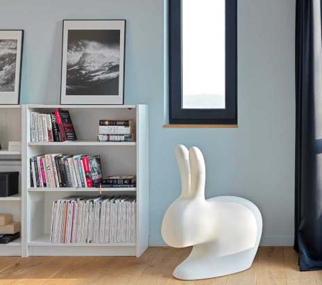 大胆なフォルムと鮮やかなカラーが目を引く、Qeebooのアイコンチェア「ラビットチェア|Rabbit Chair」。