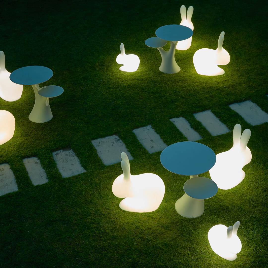ステファノ・ジョヴァンノーニがデザインしたラビットランプは、椅子と照明を兼ね備えたマルチファンクションアイテムです。