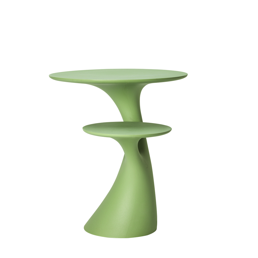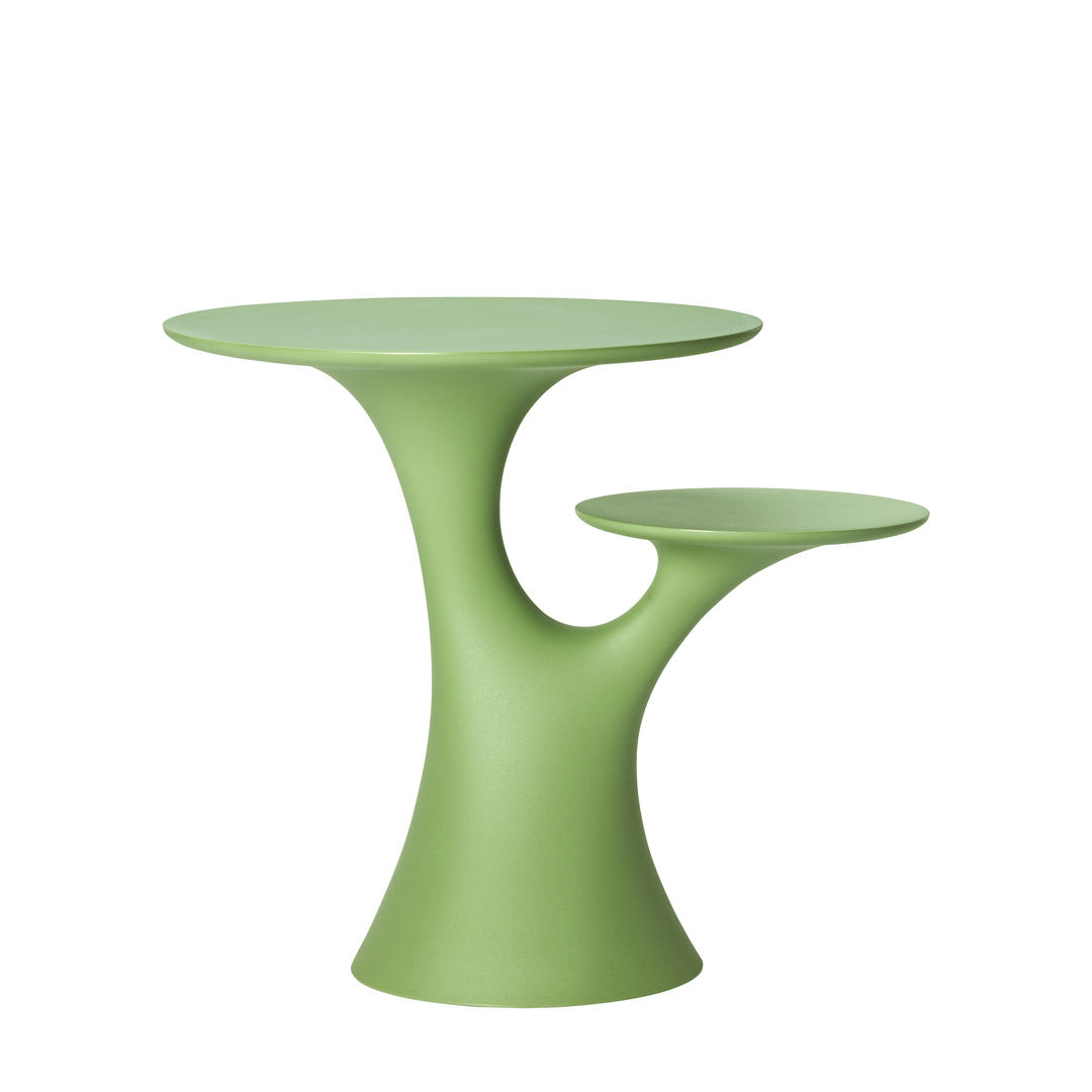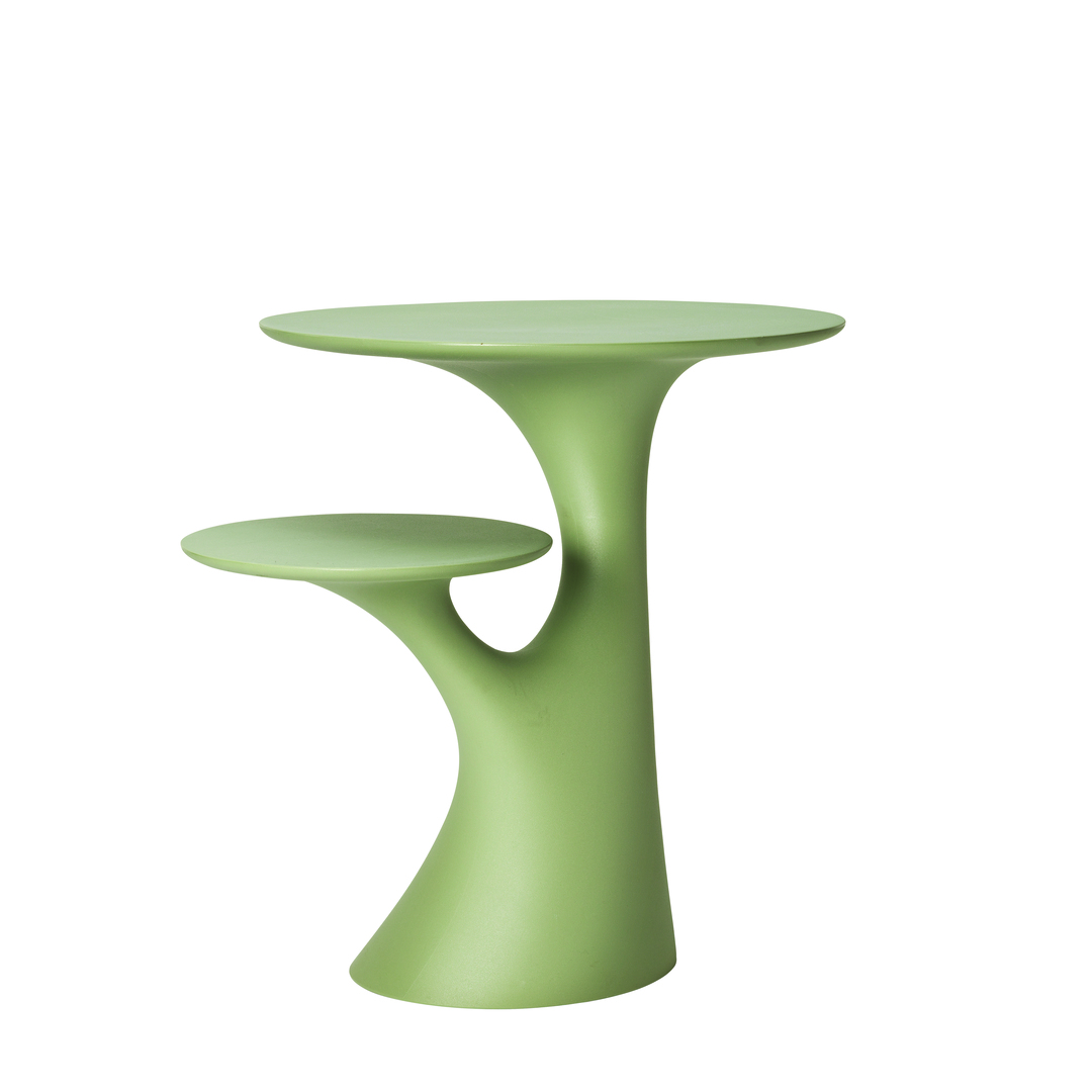 二段構造の小さな木で、上部の枝には直径70cm、高さ75cmの円形天板が設置され、ラビットチェアと調和します。