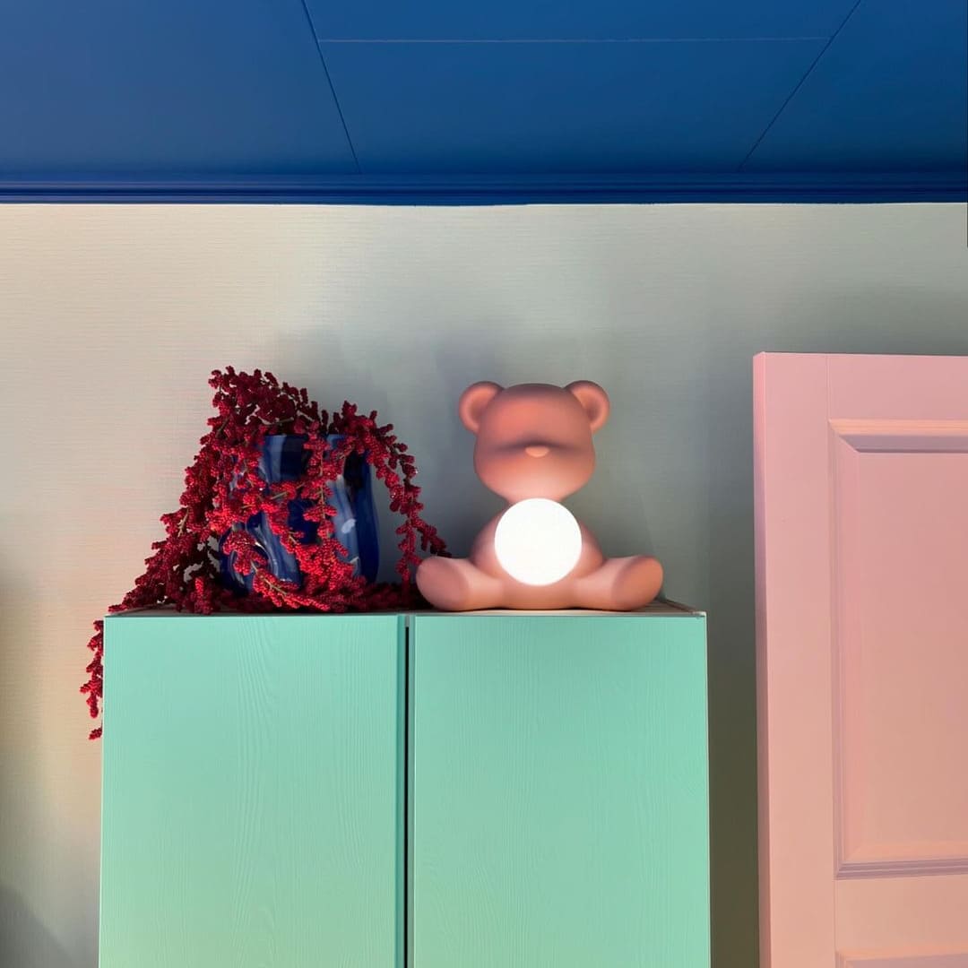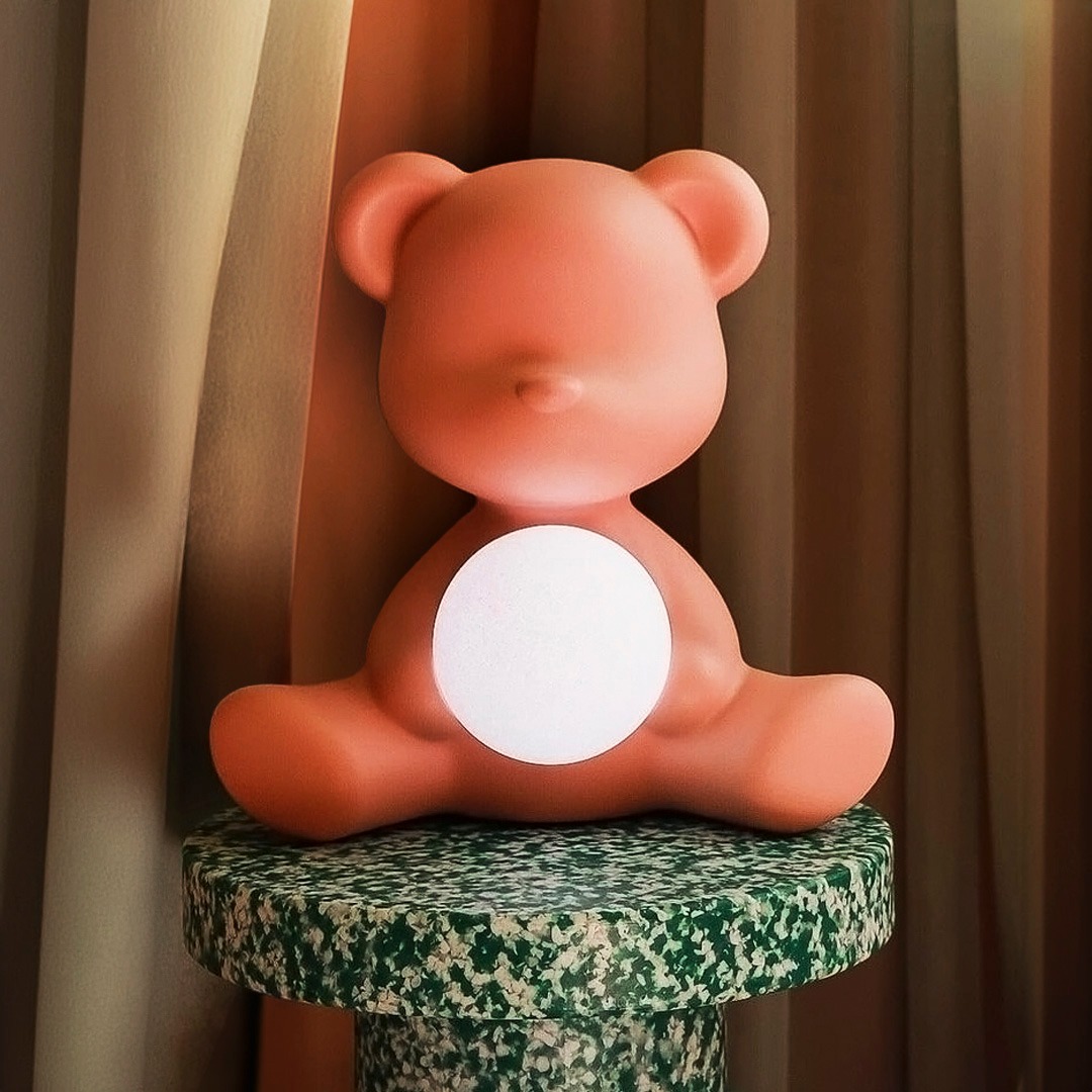 伝統的なテディベアの姿をモチーフにした、愛らしいデザインのワイヤレス充電式のテーブルランプ「Teddy Girl」。