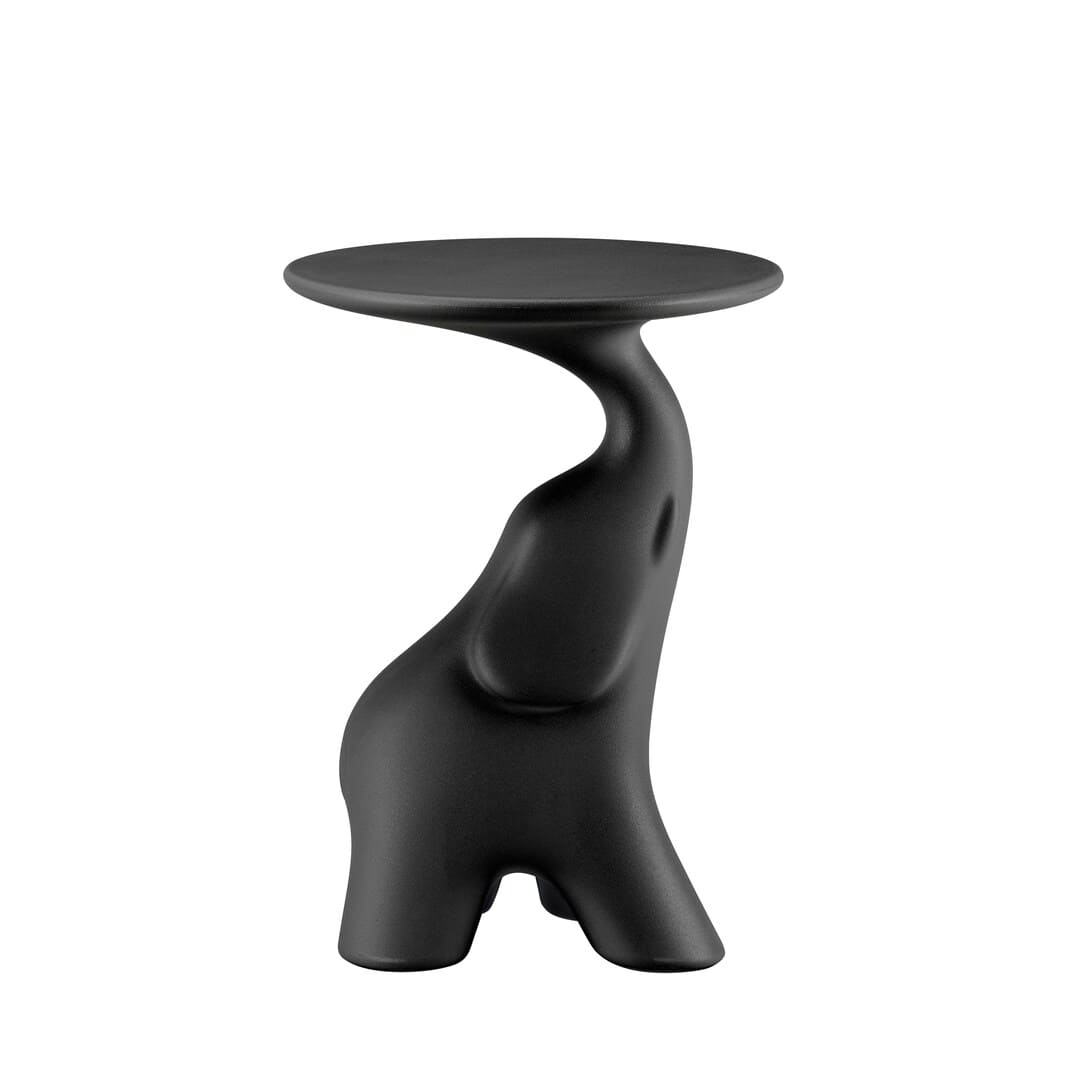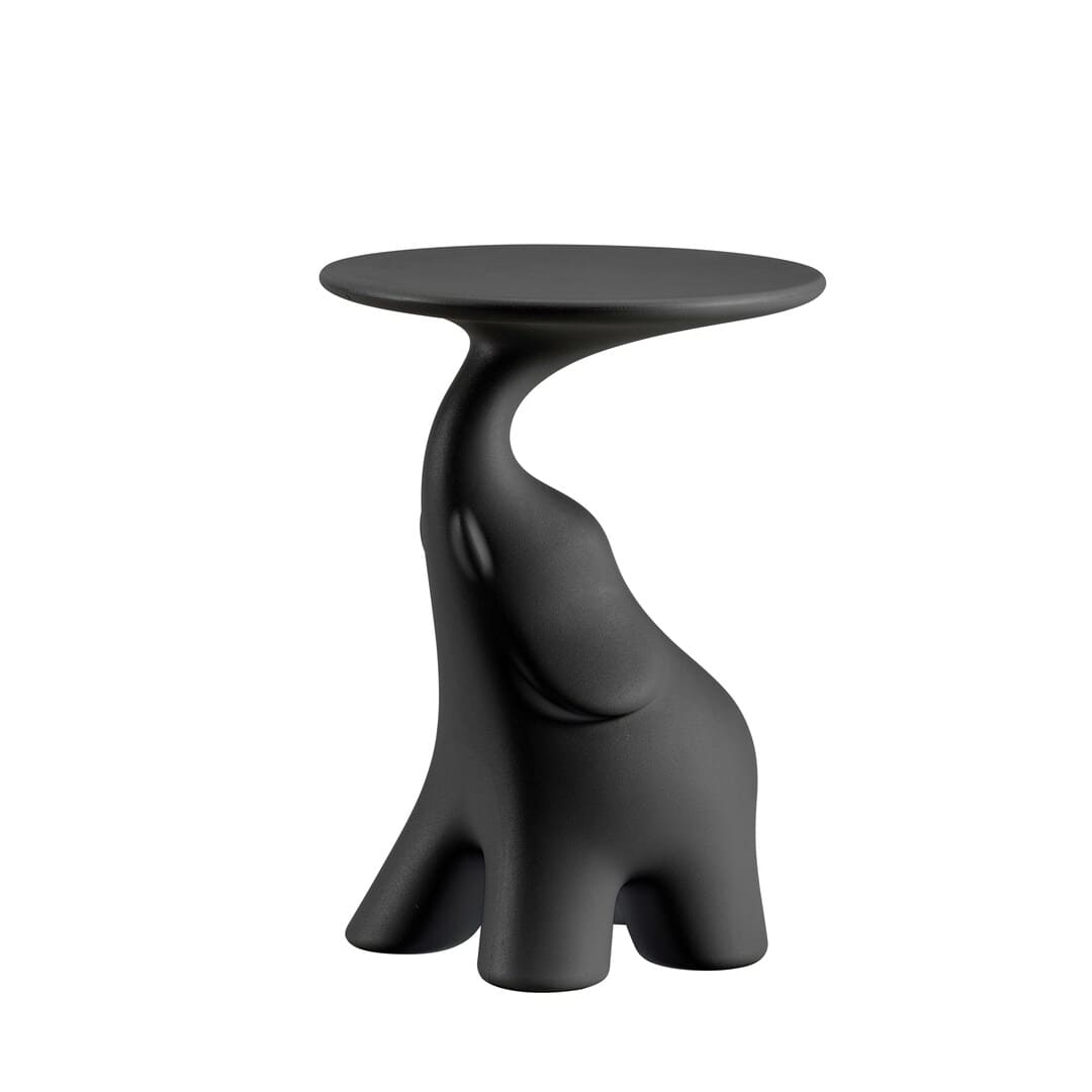 象の長い鼻が円形の天板を支えるフォルムは、インテリアの機能を超えたオブジェとしての存在感を放ちます。