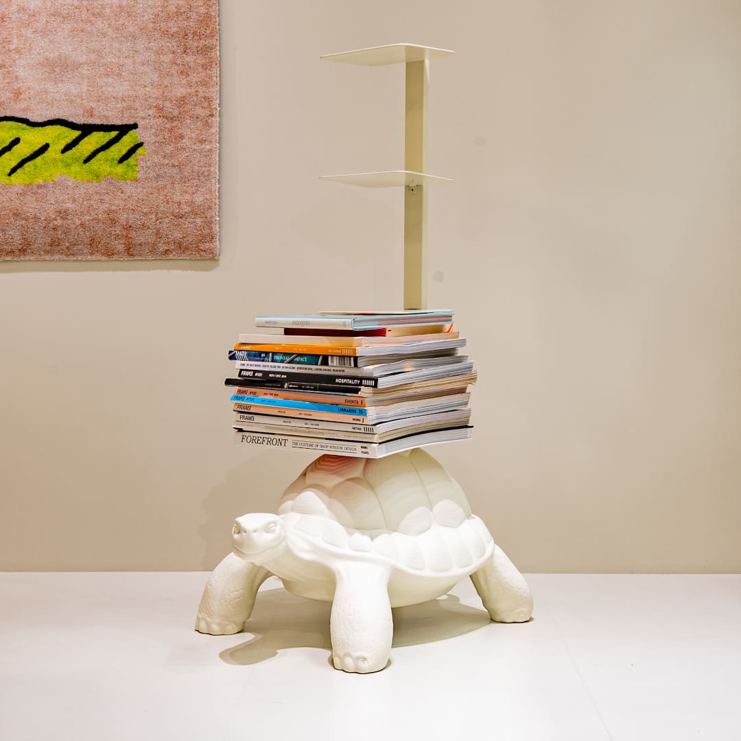 キーブーのタートルキャリーコレクションは、マルカントニオがデザインした、カメの甲羅を台座として活用する多用途インテリアシリーズです。