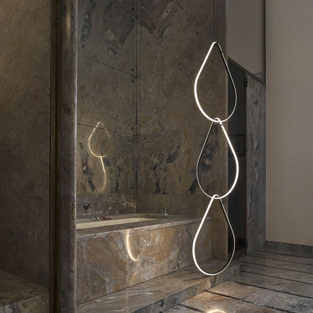 光の彫刻とも呼べる存在感は、現代照明の新たな可能性を示すものです。
