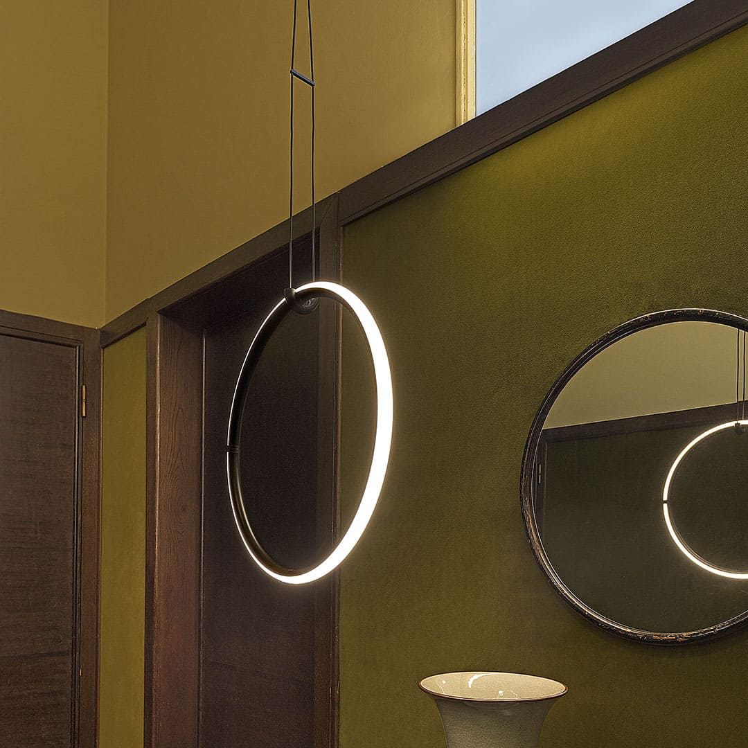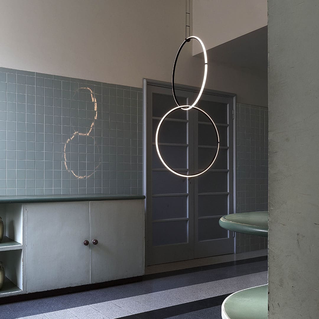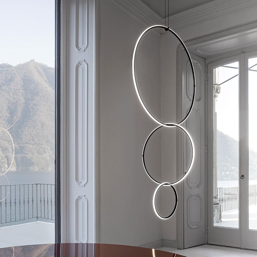 円、直線、ドロップなどの幾何学的エレメントを自由に組み合わせ、まるでジュエリーのように光を構成する革新的な照明です。