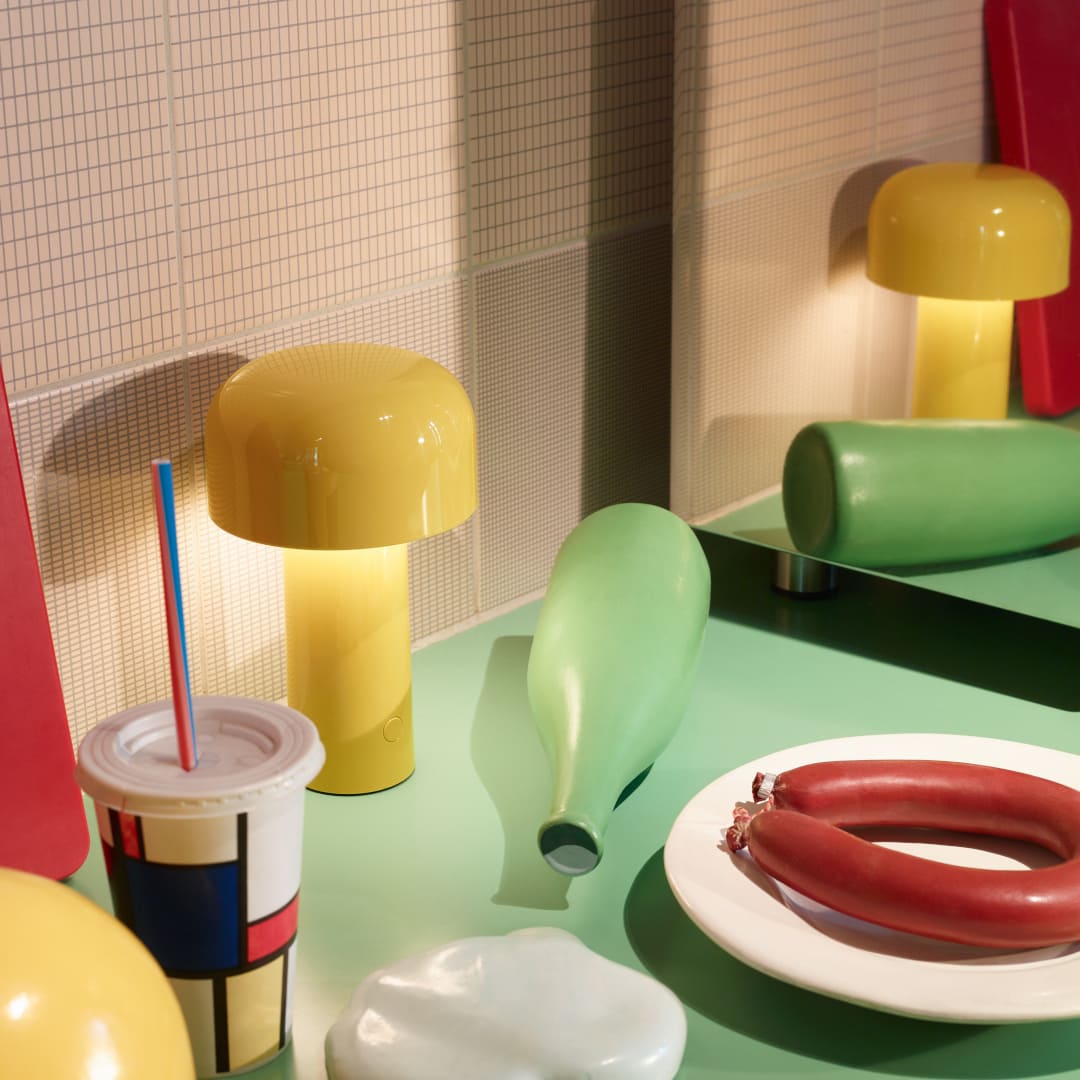 豊富なカラーバリエーションで、リビング、ベッドサイド、テラスなど多彩なシーンに調和。Bellhopは、FLOSの革新性と遊び心を象徴する存在です。