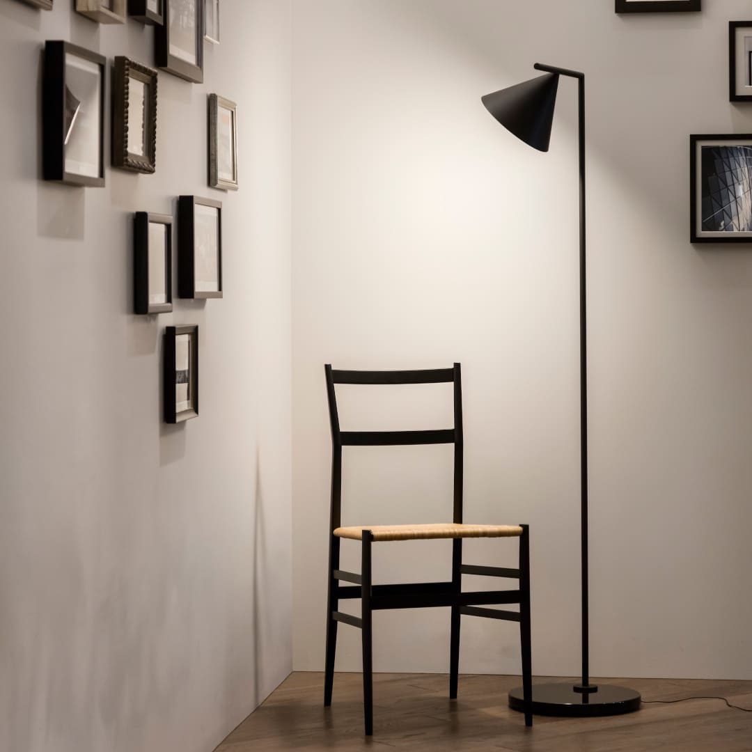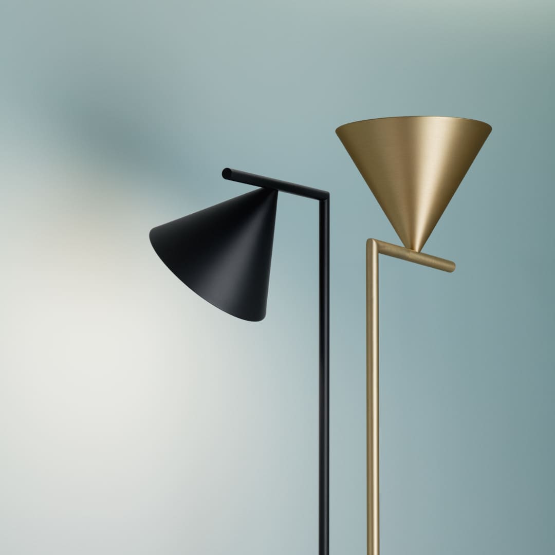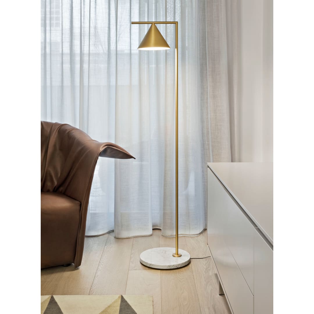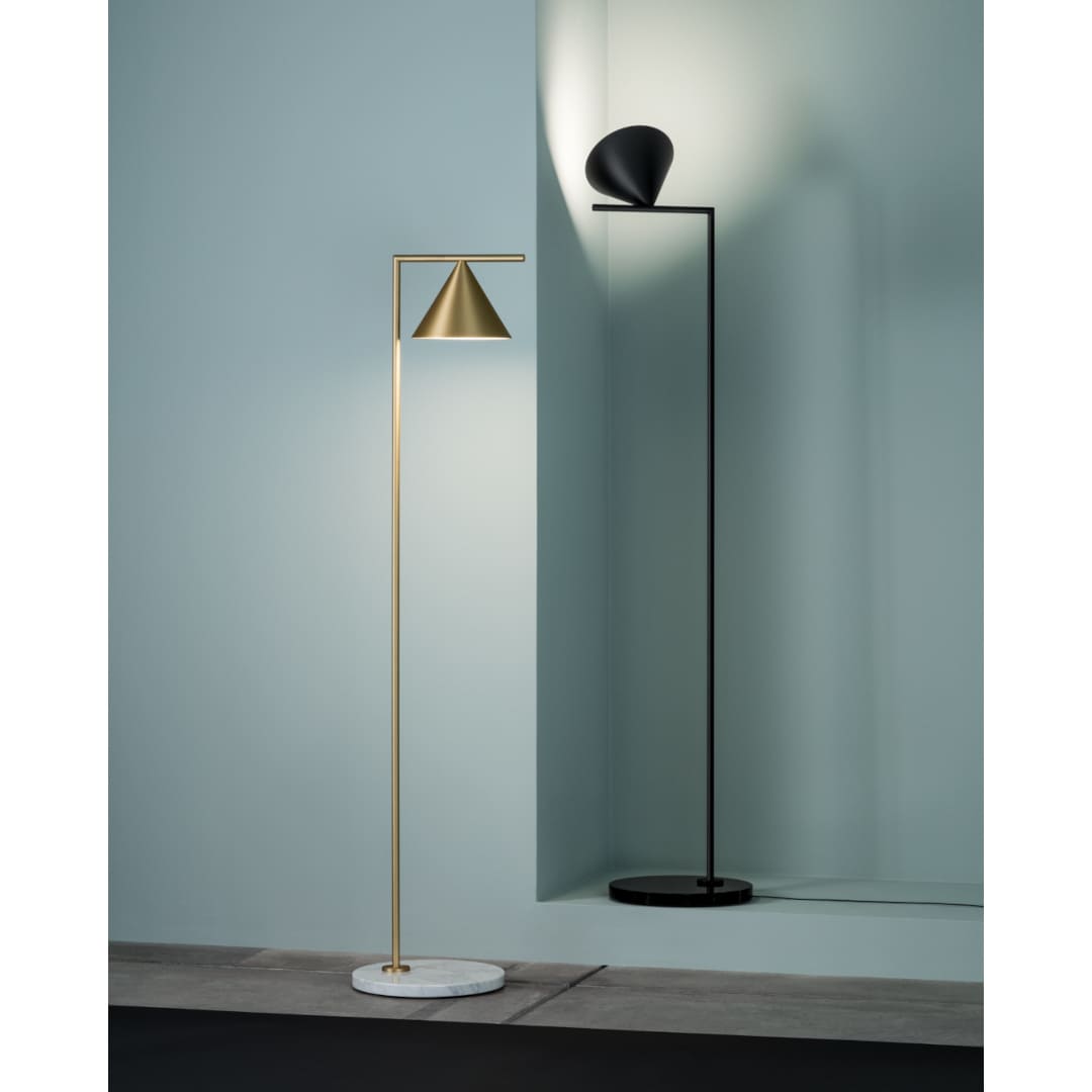 FLOS(フロス)「CAPTAIN FLINT(キャプテンフリント)」は、マイケル・アナスタシアデスが2015年にデザインしたフロアランプで、円錐形のシェードを回転させることで間接照明から読書灯まで自在に調整できる機能性が特徴です。