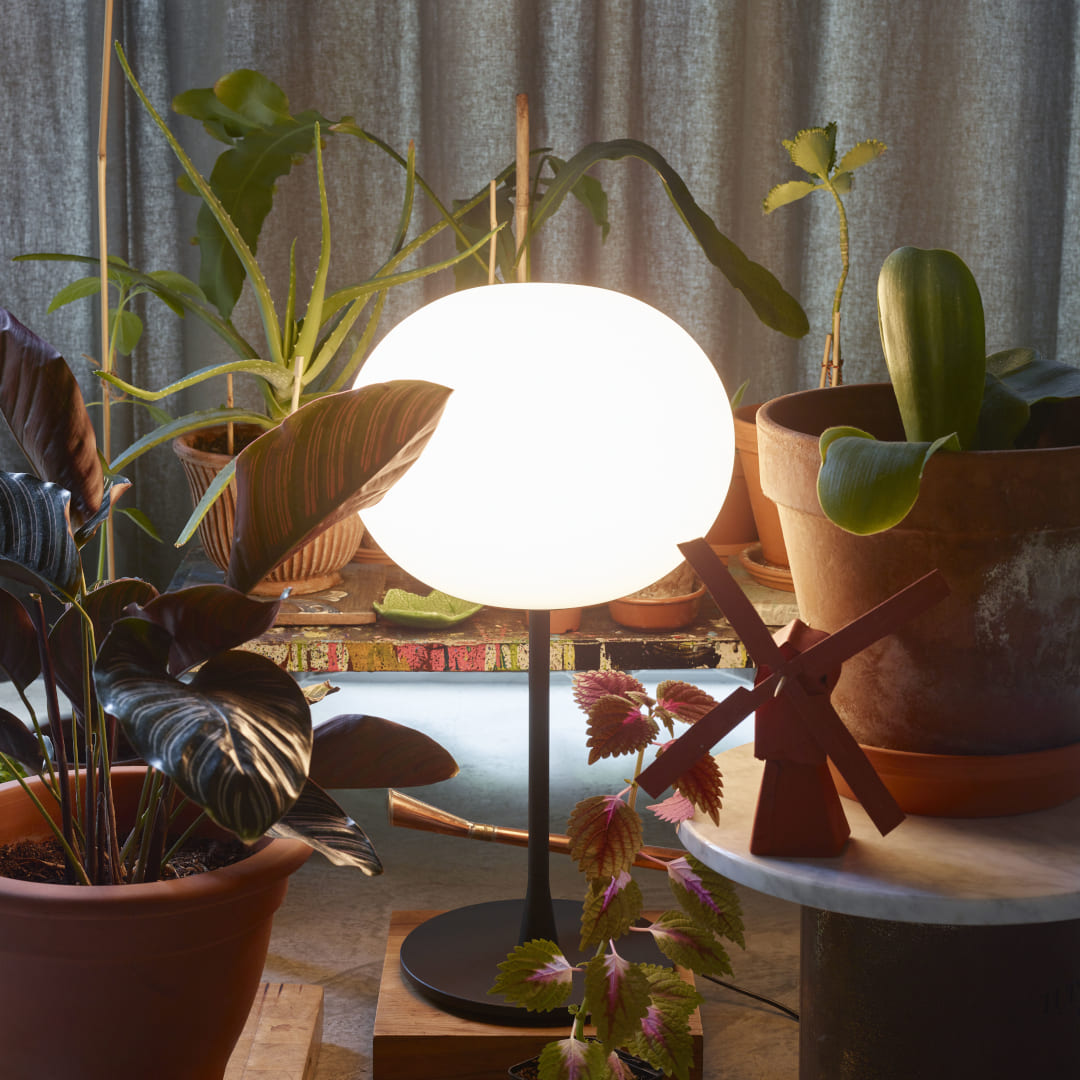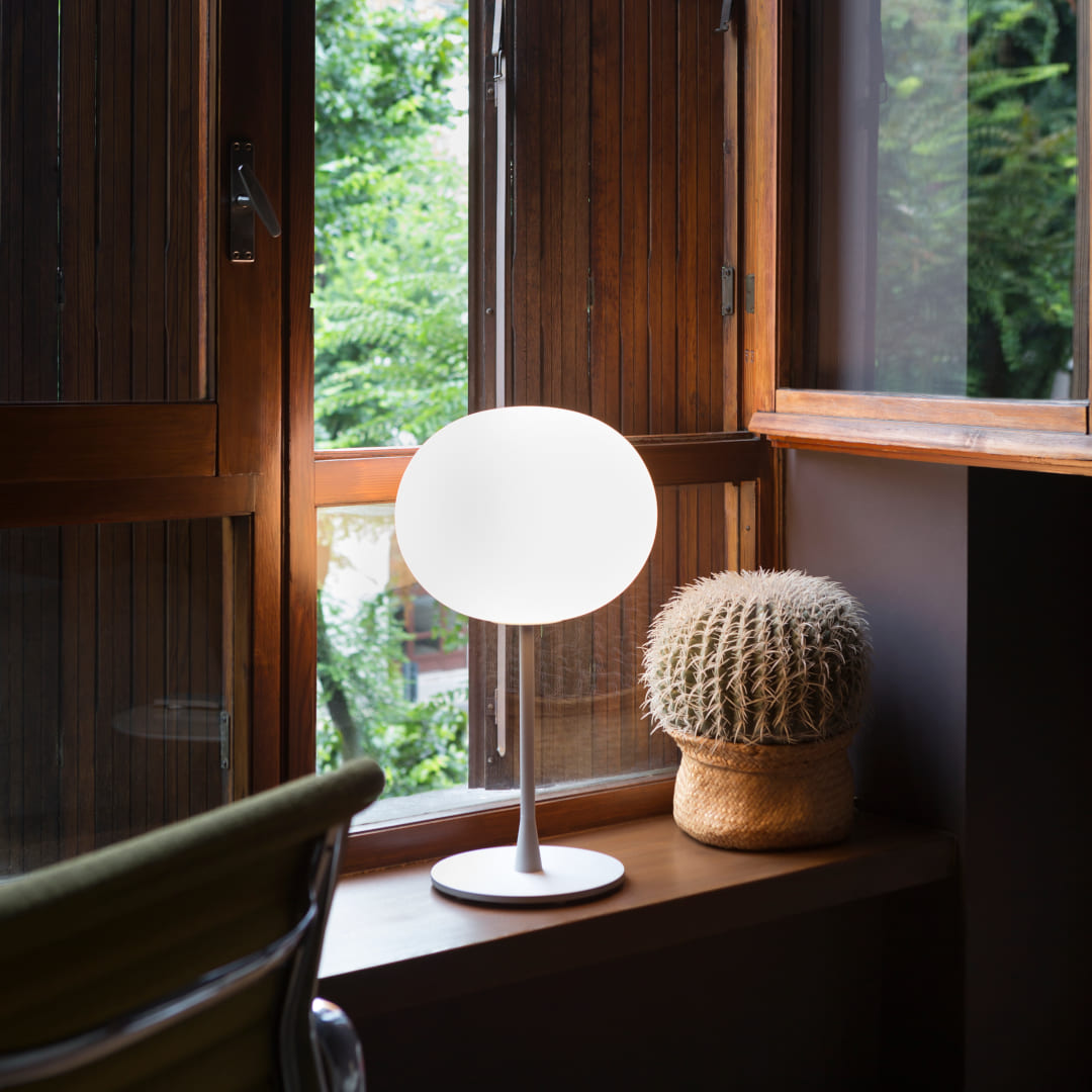 FLOS(フロス)「GLO-BALL(グローボール)」は、ジャスパー・モリソンが1998年にデザインした照明シリーズで、乳白ガラスの球体が放つ柔らかな光が特徴です。