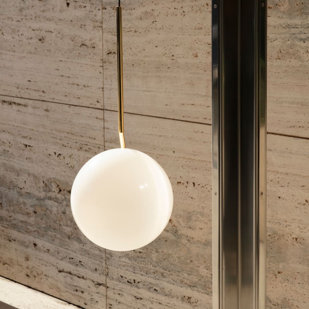 「このコレクションはバランスを探求しています。テーブルライト、ウォールライト、ペンダント、シーリングライトというシリーズがあり、すべて棒の端で完璧にバランスが取れた球体を基本形としています」とデザイナーは語ります。