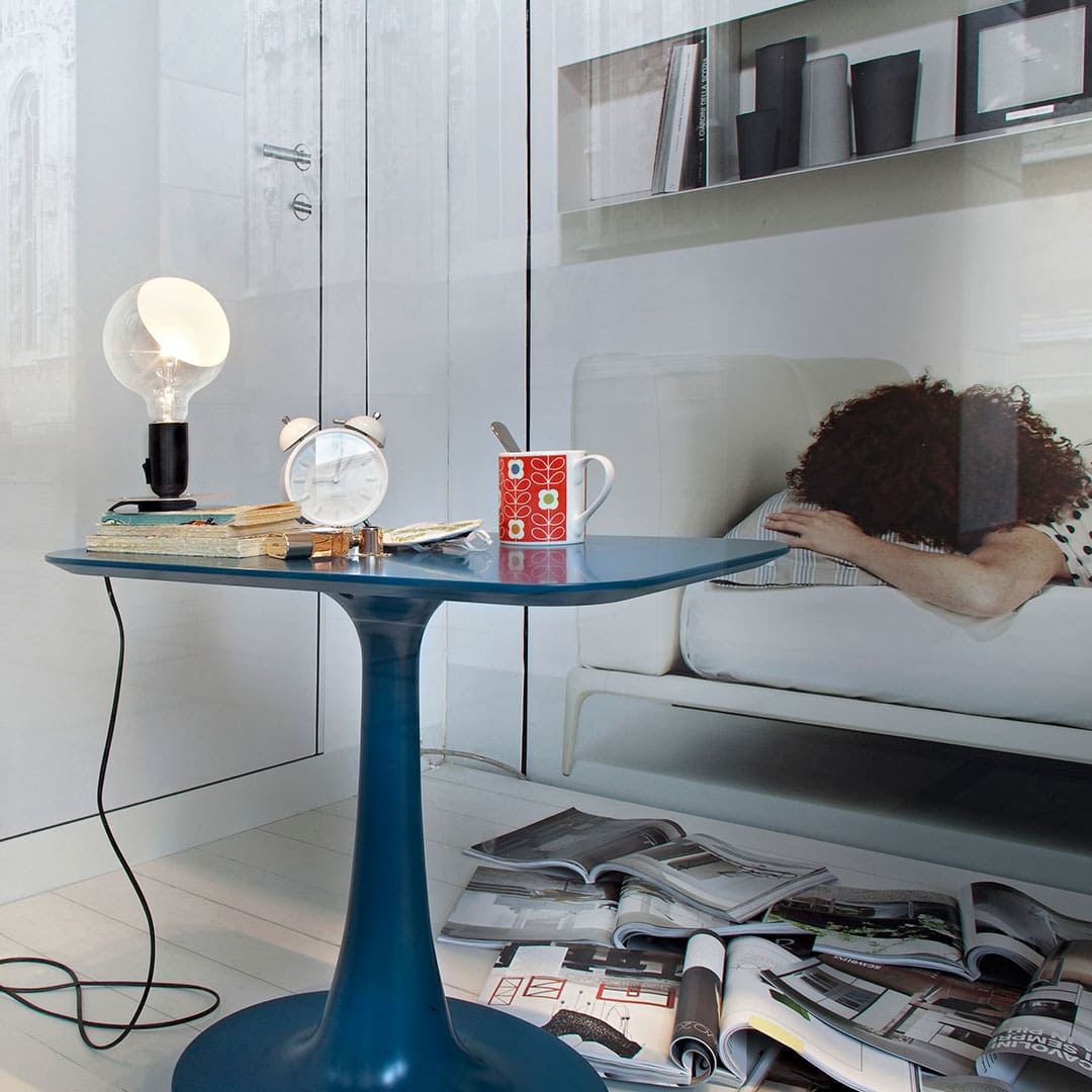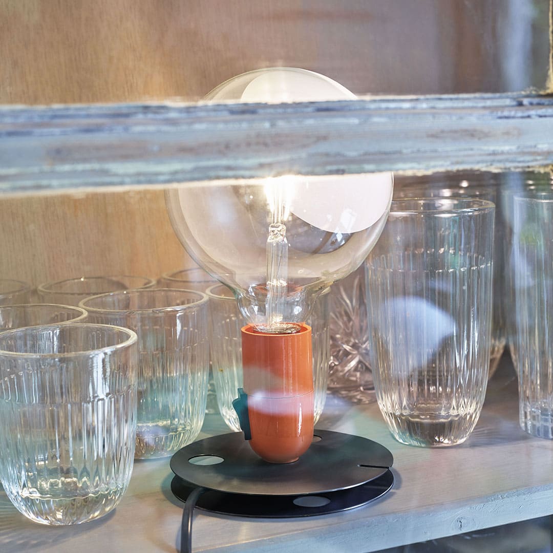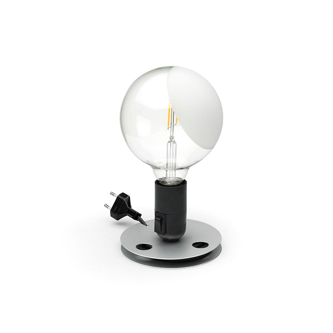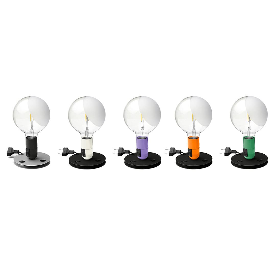 1972年にアキッレ・カスティリオーニがデザインしたFLOS(フロス)「LAMPADINA(ランパディナ)」は、映画フィルムのリールをベースに採用し、部分的にフロスト加工を施した電球を組み合わせたテーブルランプです。