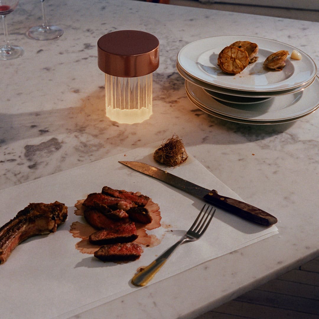 ホテルやレストランのテーブルから、プライベートな空間まで幅広く活躍し、現代のライフスタイルに寄り添う上質な光を提供します。