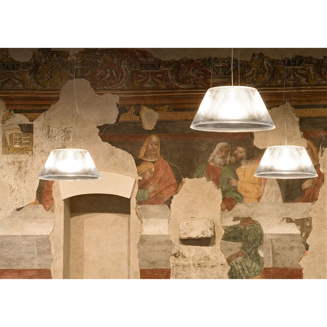 フィリップ・スタルクが1996年にデザインしたFLOS(フロス)「ROMEO MOON(ロメオムーン)」は、ガラス製のプリーツシェードが特徴的なペンダントライトです。