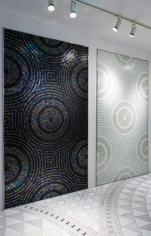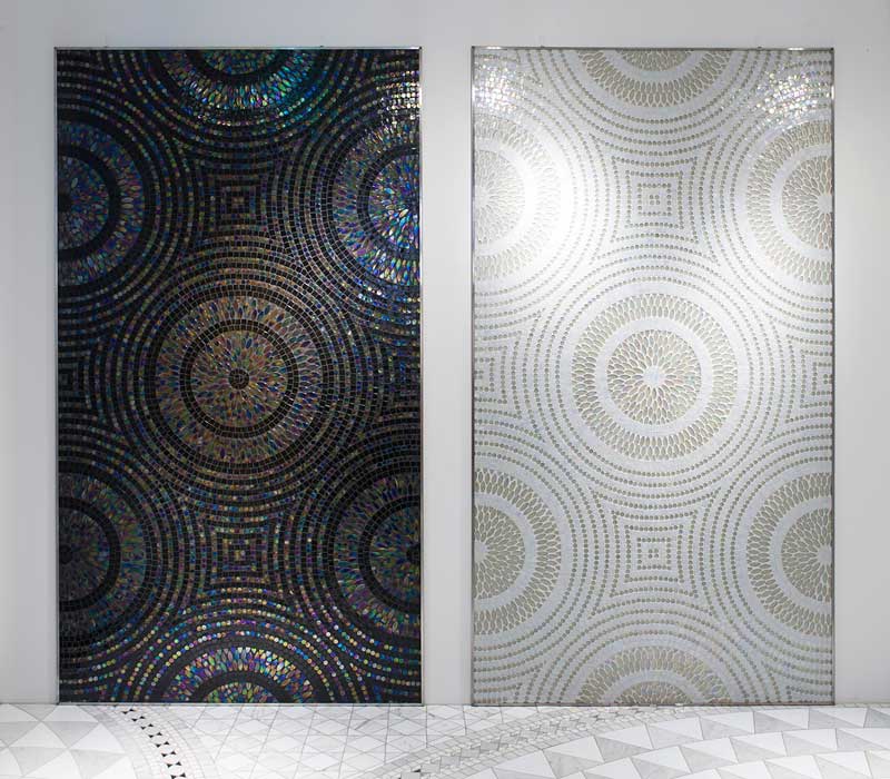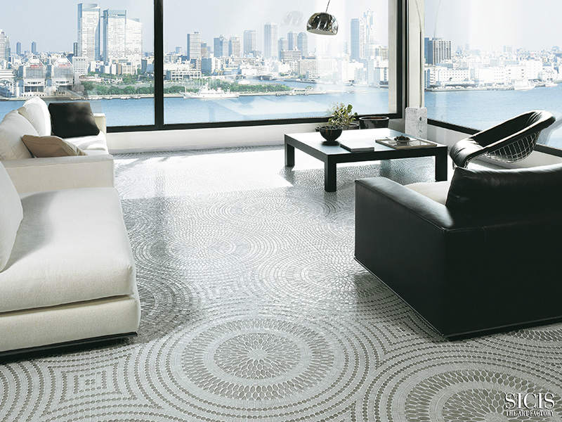 と組み合わせることで、枯山水の庭園を思わせるような、静寂な空間が生まれます。日本的な風流な趣をモザイクで表現しています。