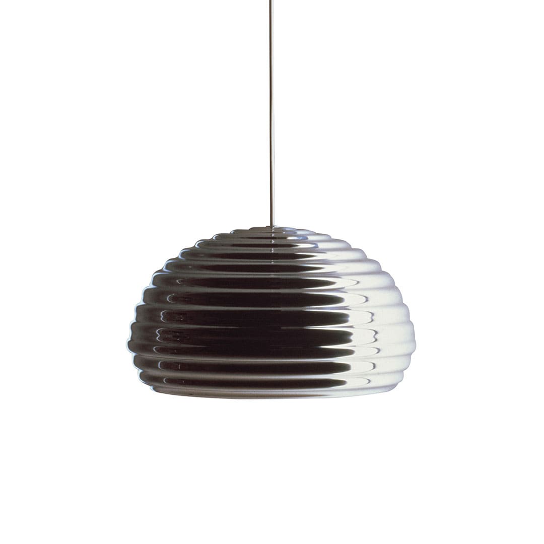 工業的なスピン加工という既製技術をそのままデザインに取り込み、日常的な素材を洗練された照明へと昇華させた点に、カスティリオーニのレディメイド的思想が表れています。