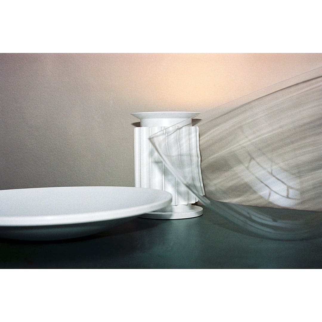 アルミニウム製のベースは古代の円柱を思わせる造形で、実際には放熱を目的とした機能的デザイン。