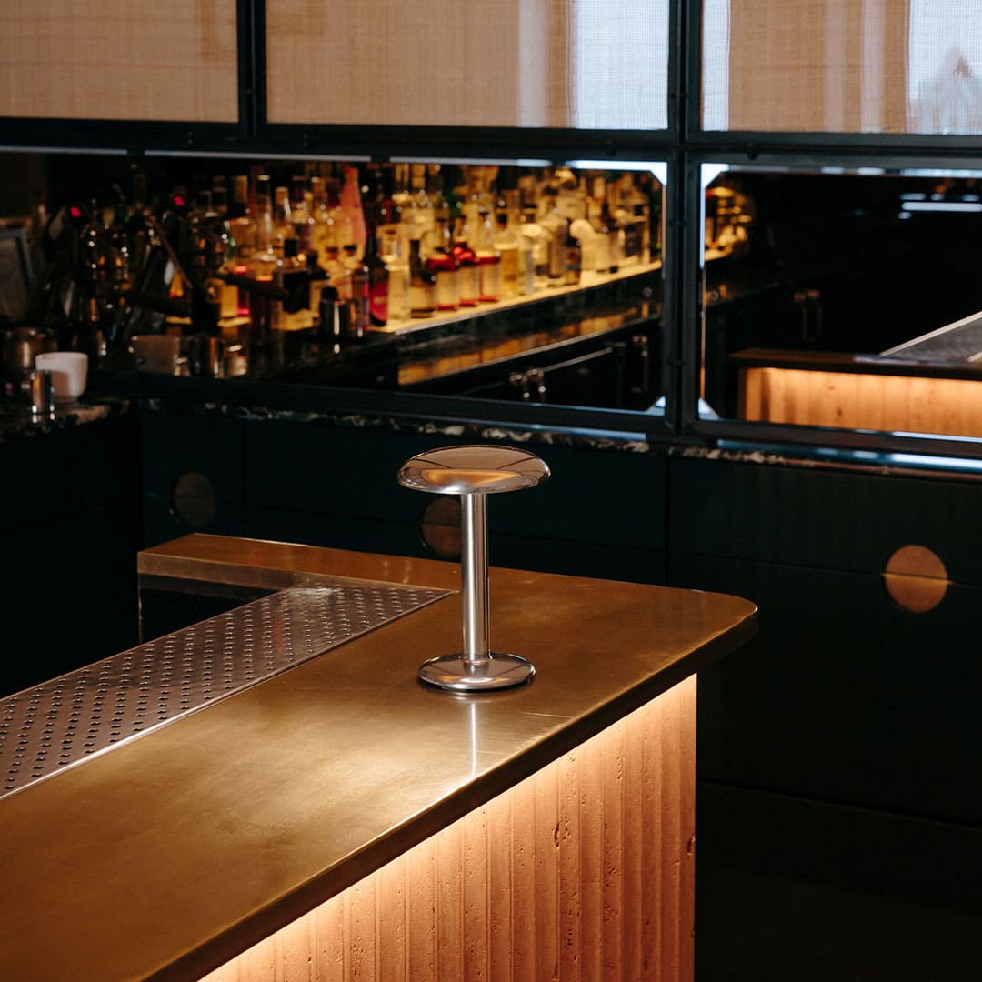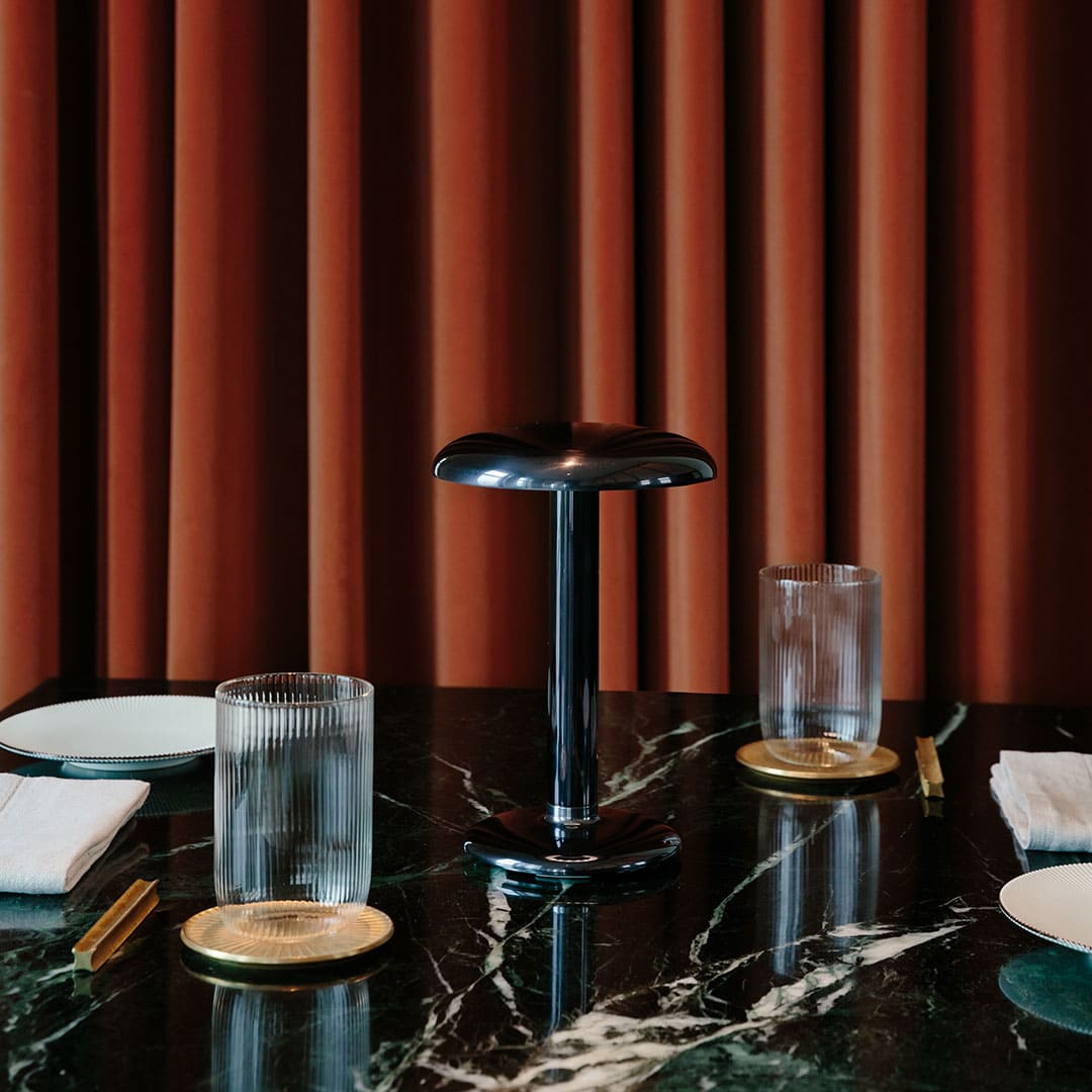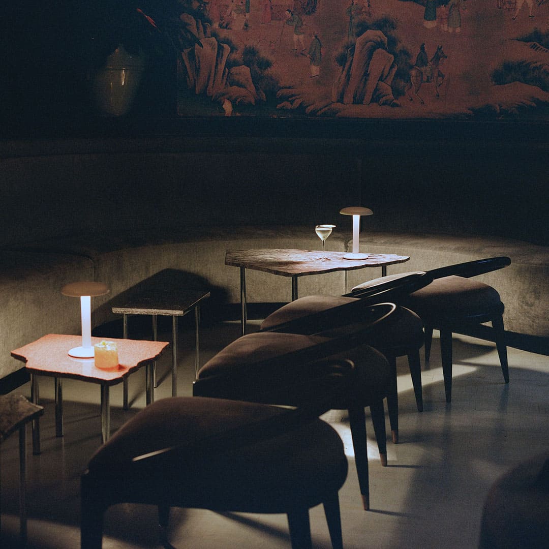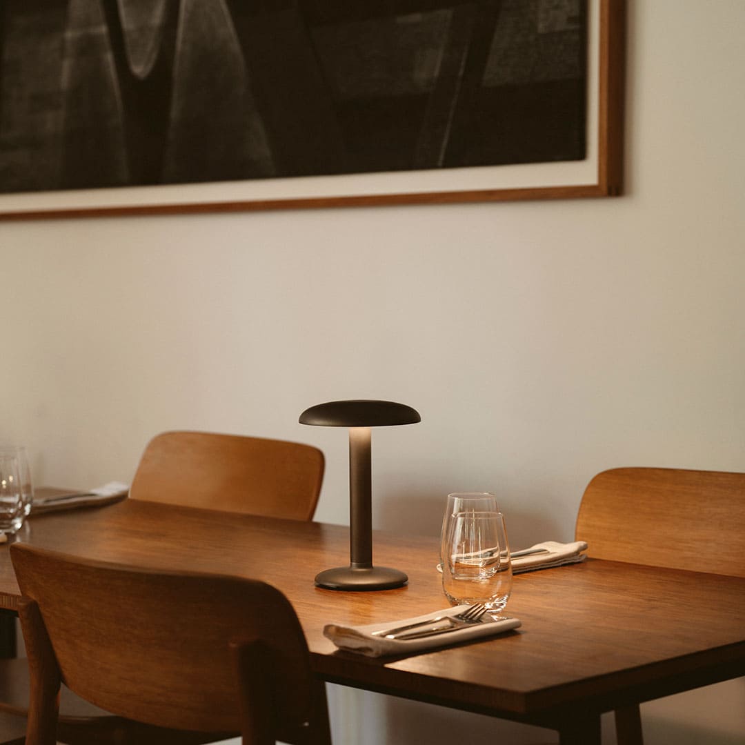 食卓を照らす光に、特別な物語を。Flosのグスタブは、レストランやホテルのために生まれた充電式ポータブルランプです。デザイナーのヴァン・ドゥイセンが映画『グランド・ブダペスト・ホテル』の愛すべきコンシェルジュに着想を得て名付けたこの照明は、飲食店から自宅のダイニングまで、あらゆる場面で最高の光を演出します。