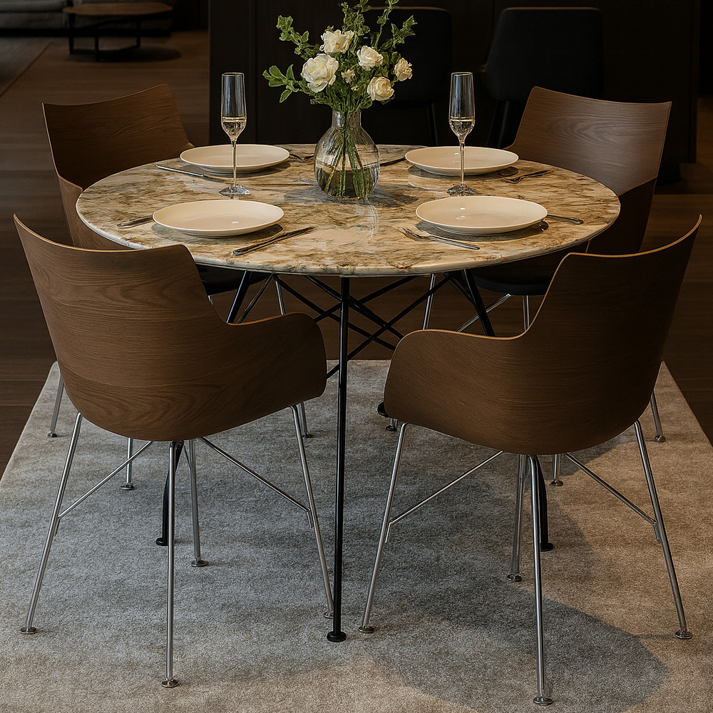 Kartell(カルテル)の人気ダイニングテーブル「グロッシー」とチェア「QウッドアッシュD」4脚の期間限定セット品です。