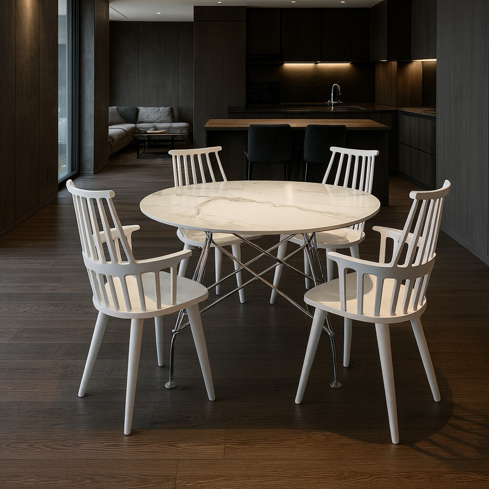 丈夫でスリムなセラミックトップは軽量で、脚部も軽快かつスタイリッシュな印象に。