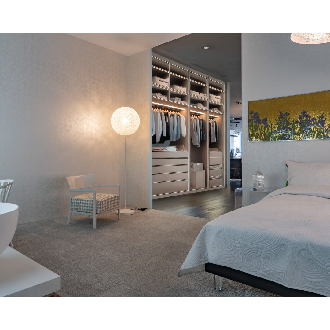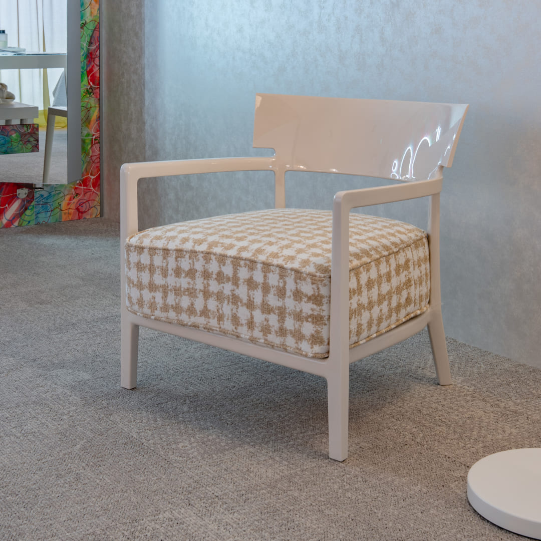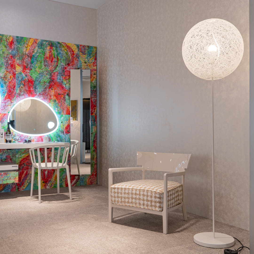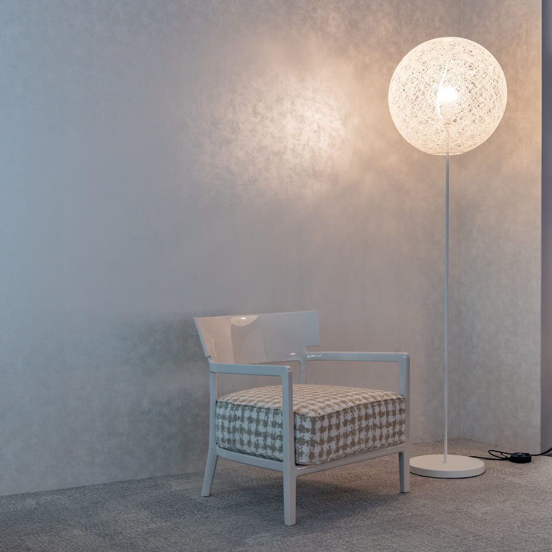 フィリップ・スタルクによるシンプルで無駄のないKartell(カルテル)のアームチェア「カーラ」とmoooi(モーイ)の人気照明「ランダムライトフロアランプ」の期間限定セット品です。