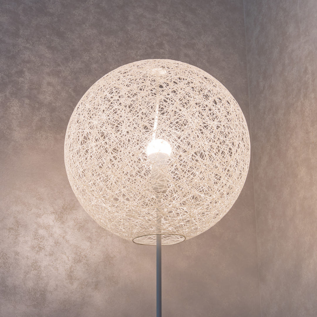 ランダムライトは本体自体がディフューザーの役割をし、中心の光源を拡散させて、その姿はまるで夜空に浮かぶ月のような印象です。