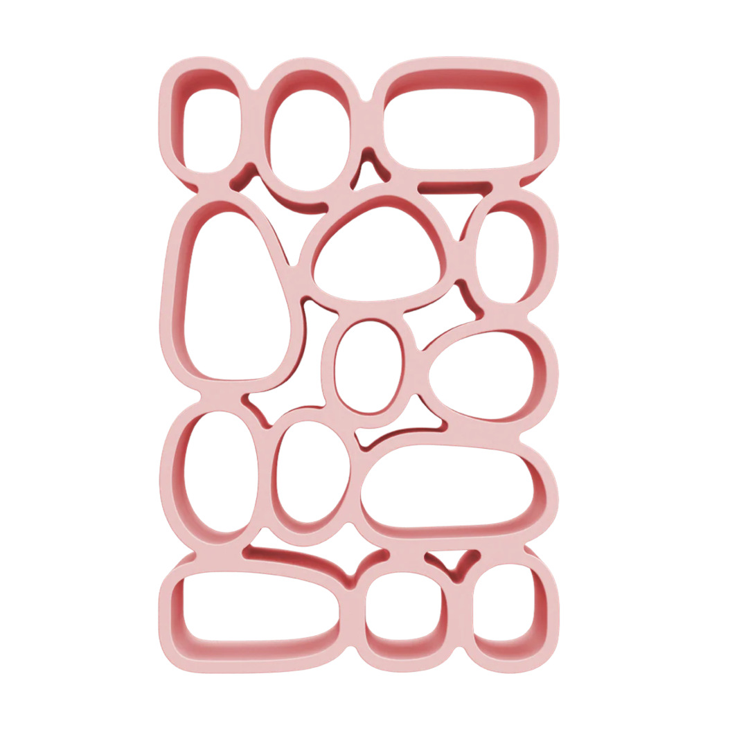 そのデザインは、穴の開いた石が積み重なった壁をイメージしており、連続する不規則な開口部が、まるで自然の造形のような印象を与えます。