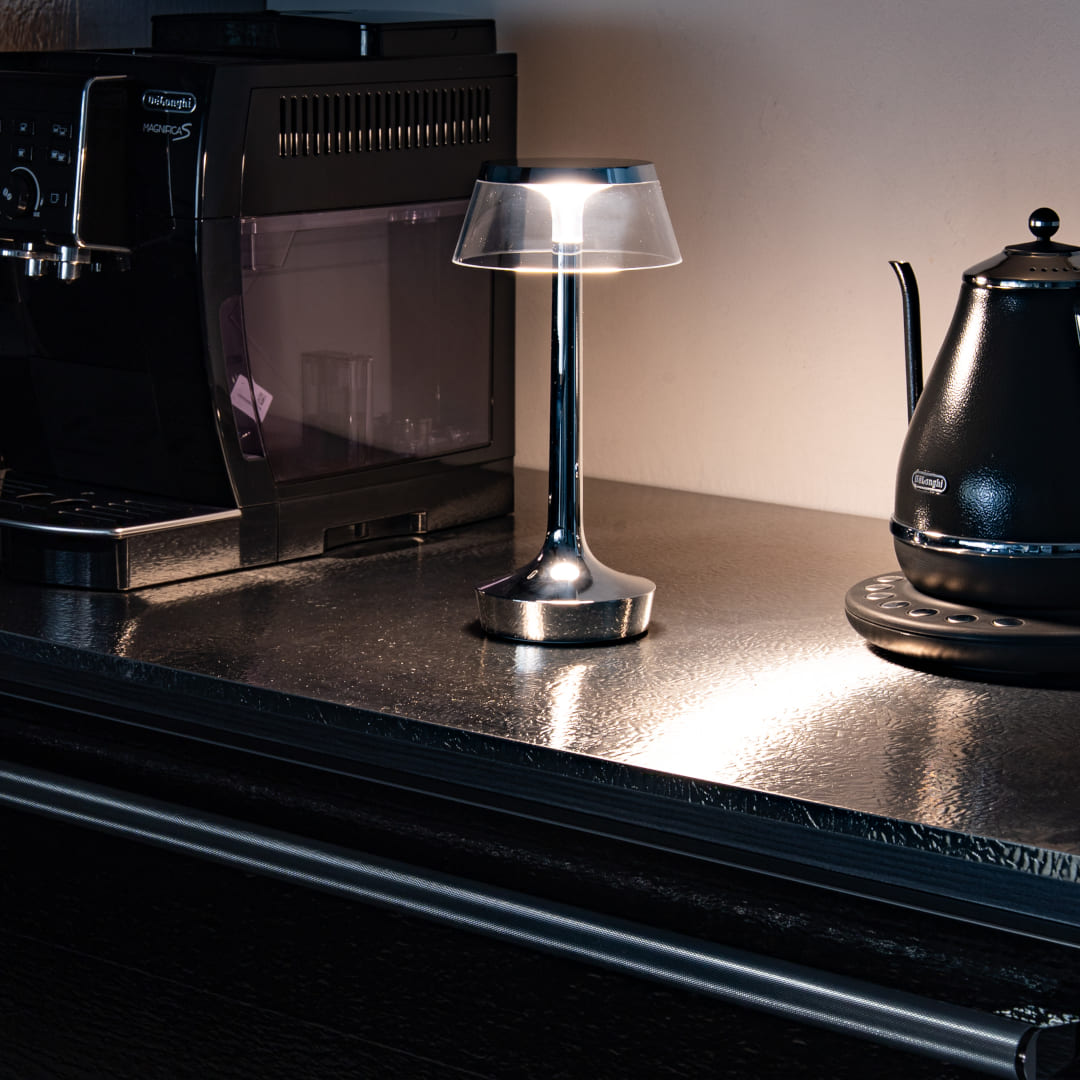 充電式で持ち運び可能なため、ダイニングやベッドサイド、書斎、バルコニーなど好きな場所で活躍。