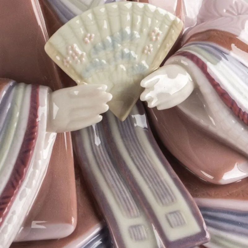 リヤドロが追い求めてきた子どものあどけない可愛らしさと、どこか大人び始めた子供の成長を感じさせる表情が愛らしい雛人形。