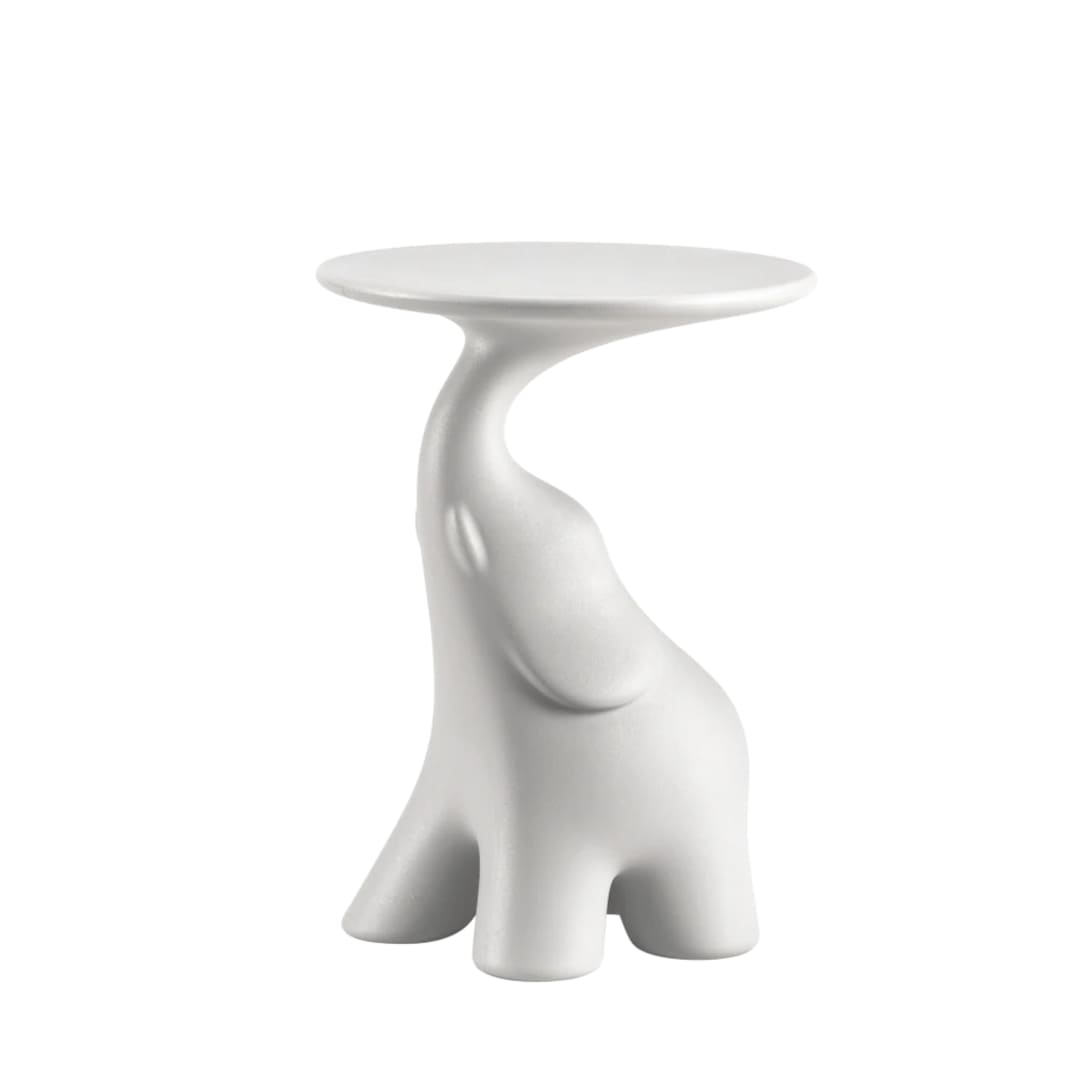 象の長い鼻が円形の天板を支えるフォルムは、インテリアの機能を超えたオブジェとしての存在感を放ちます。