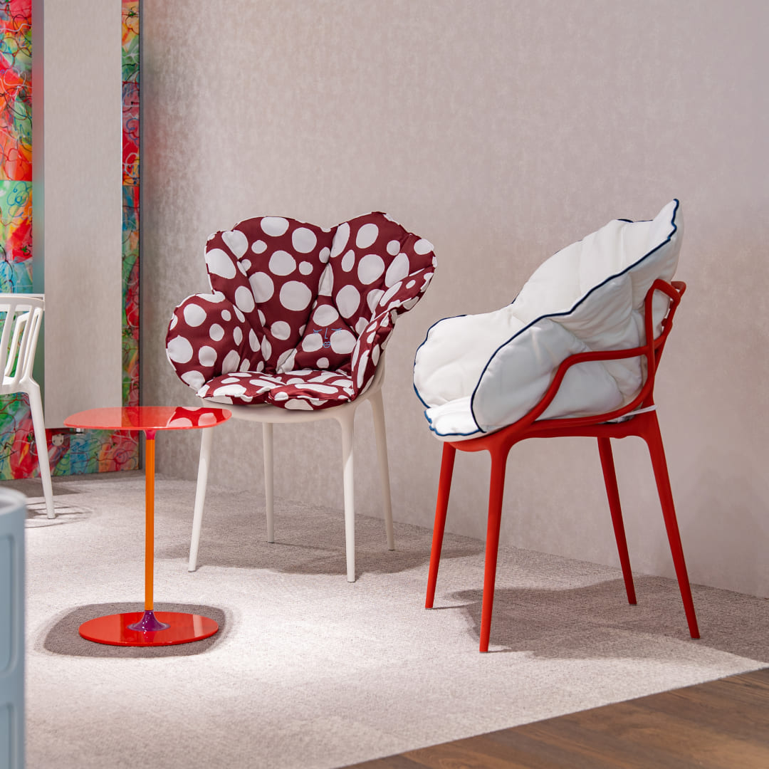 Kartellのアイコンであるポリカーボネート製チェアなどにこのクッションを合わせることで、ゆったりとくつろげるソフトなアームチェアのような使い心地にアップデートできます。