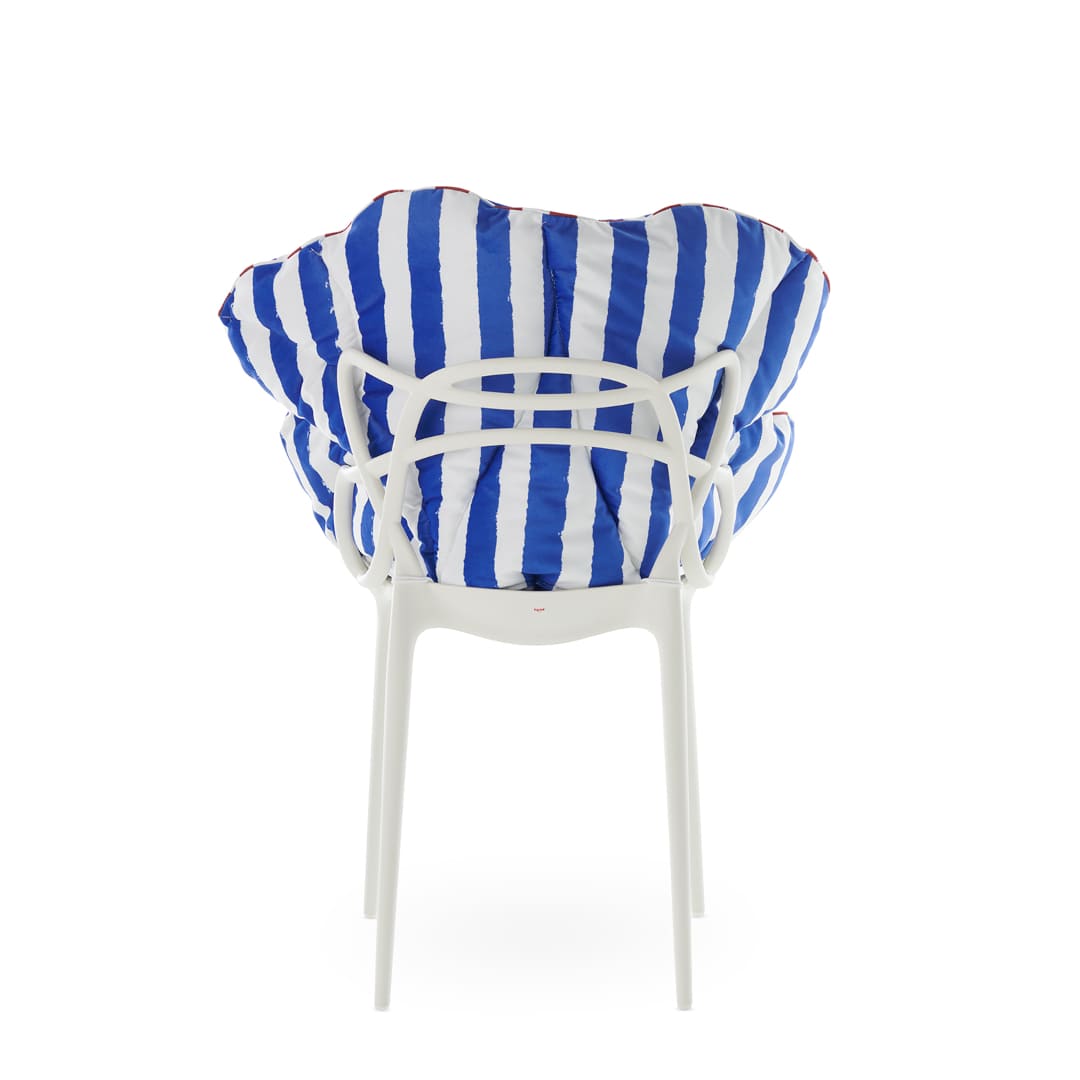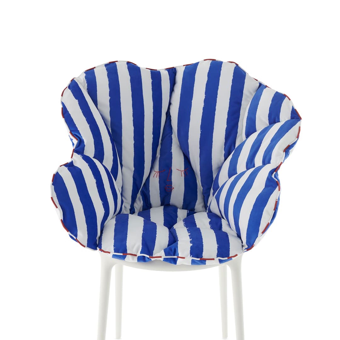 Kartellのアイコンであるポリカーボネート製チェアなどにこのクッションを合わせることで、ゆったりとくつろげるソフトなアームチェアのような使い心地にアップデートできます。