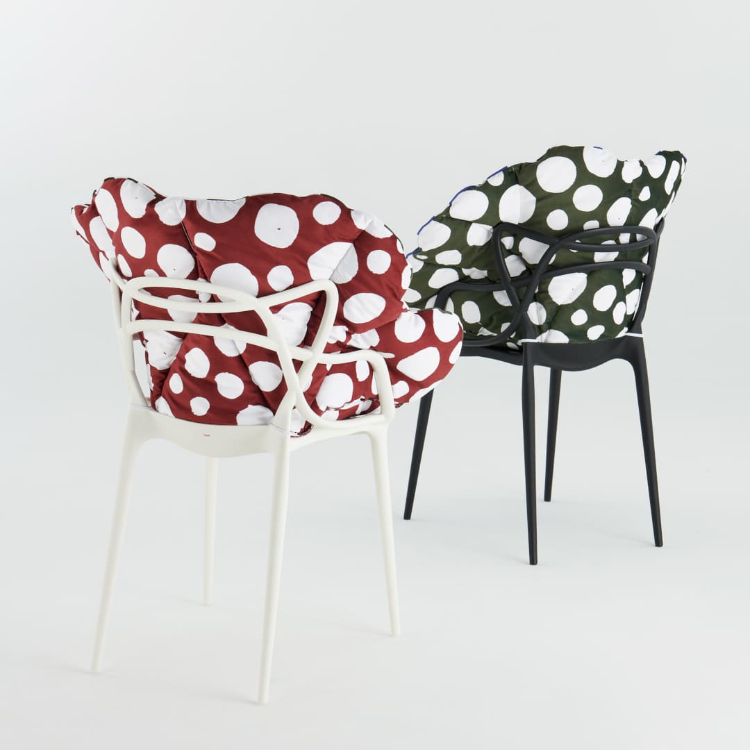 Kartellの名作チェアとチェアにぴったりと合うようにサイズ設計された「アリスズフラワーズクッション」のセット品です。