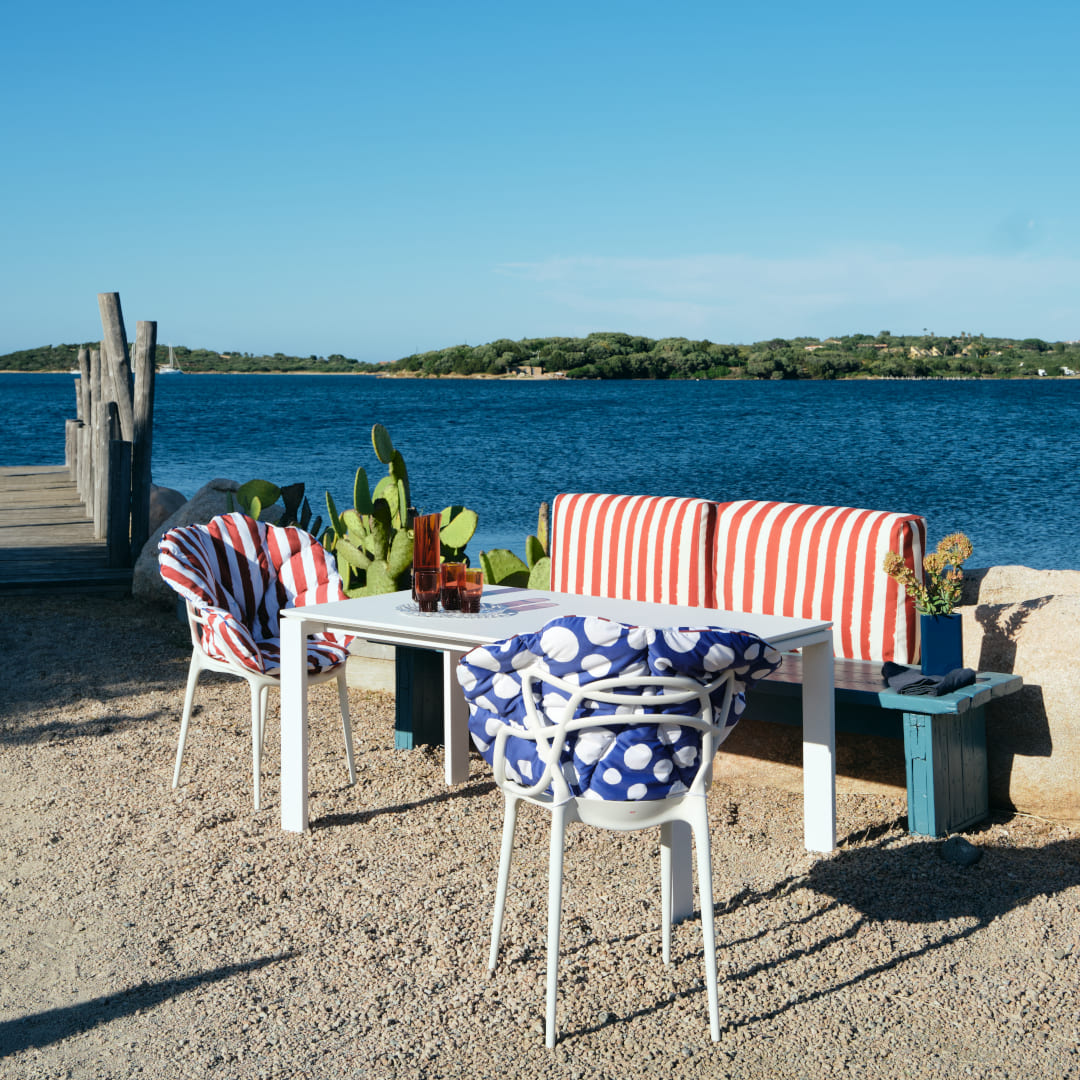 Kartellの名作チェアとチェアにぴったりと合うようにサイズ設計された「アリスズフラワーズクッション」のセット品です。