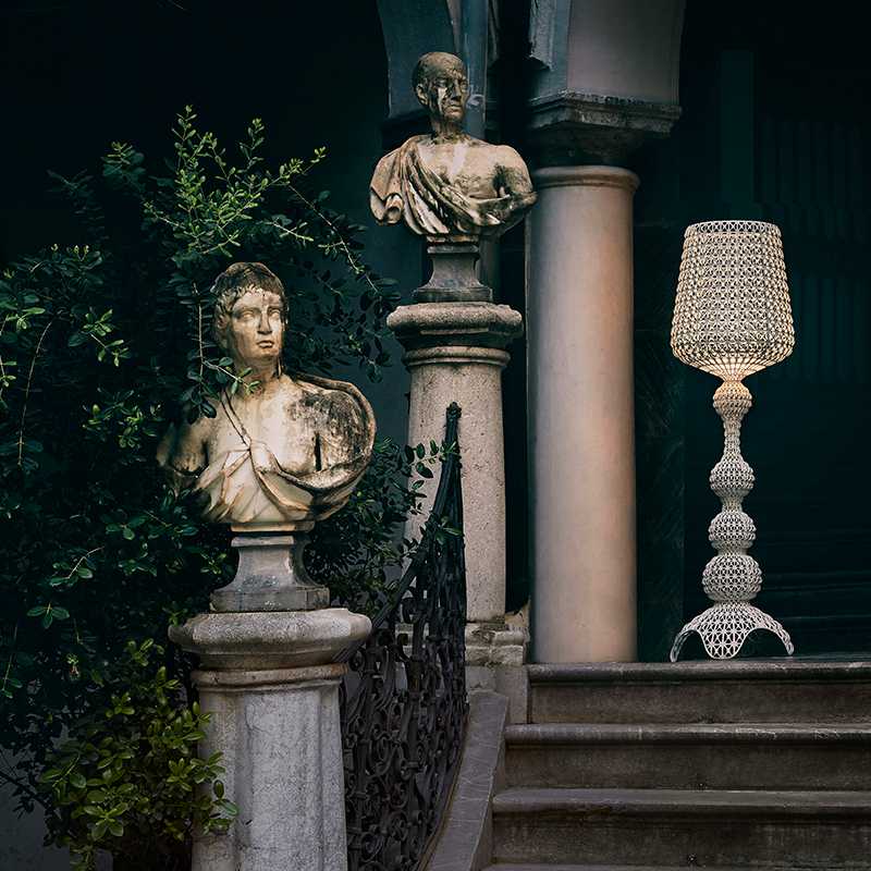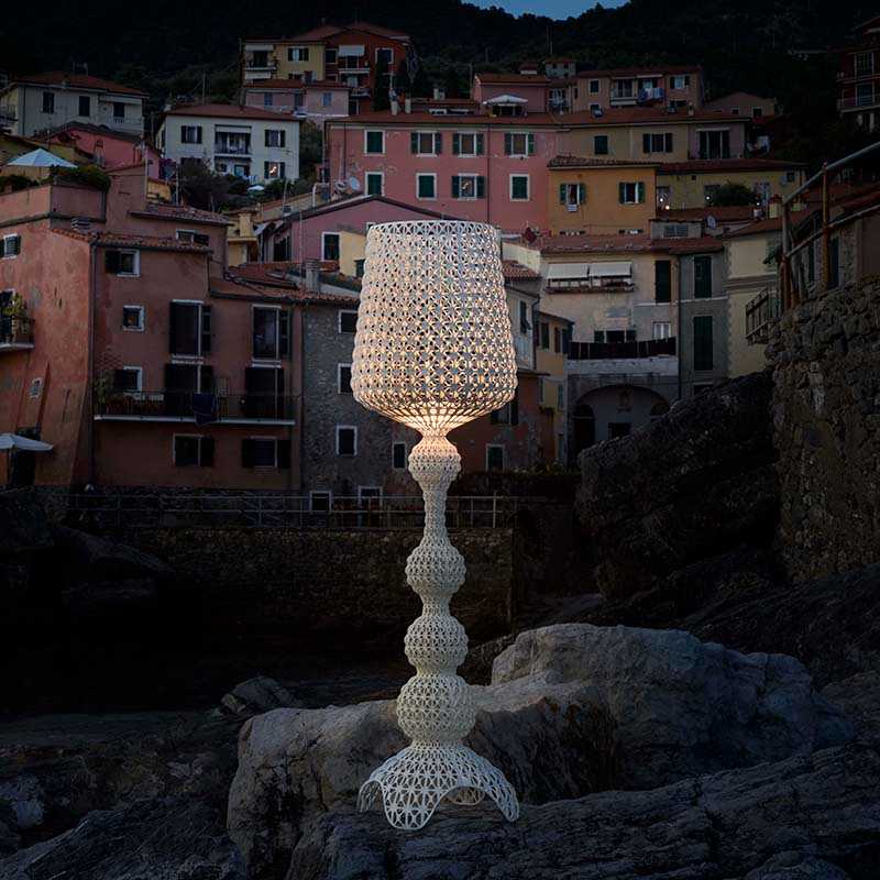 カブキは糸を紡いで作られるレース生地のような独自形状のフロアランプです。