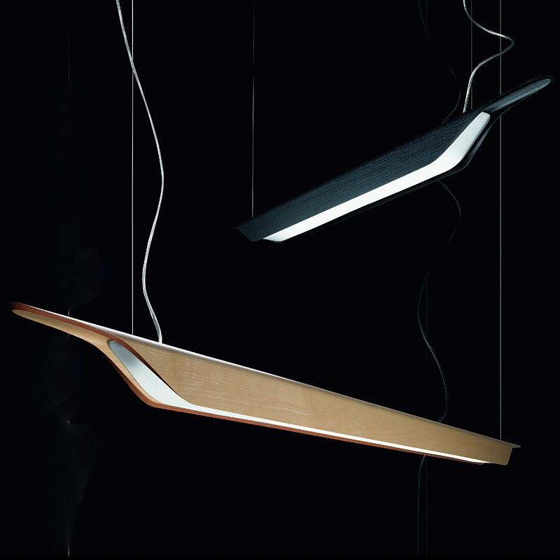 スウェーデンで見かけたカヌーのかたちをしたボウルからイメージされた照明です。木目の美しさが際立って見えるシェードは自然で滑らかな輪郭をかたちどり、そこからフロアやテーブルに直線的でやわらかな光が広がります。