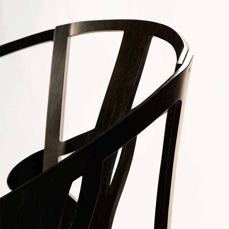 きれいな木目のツヤとトリックアートのようなさまざまな表情が楽しめるアームチェア。