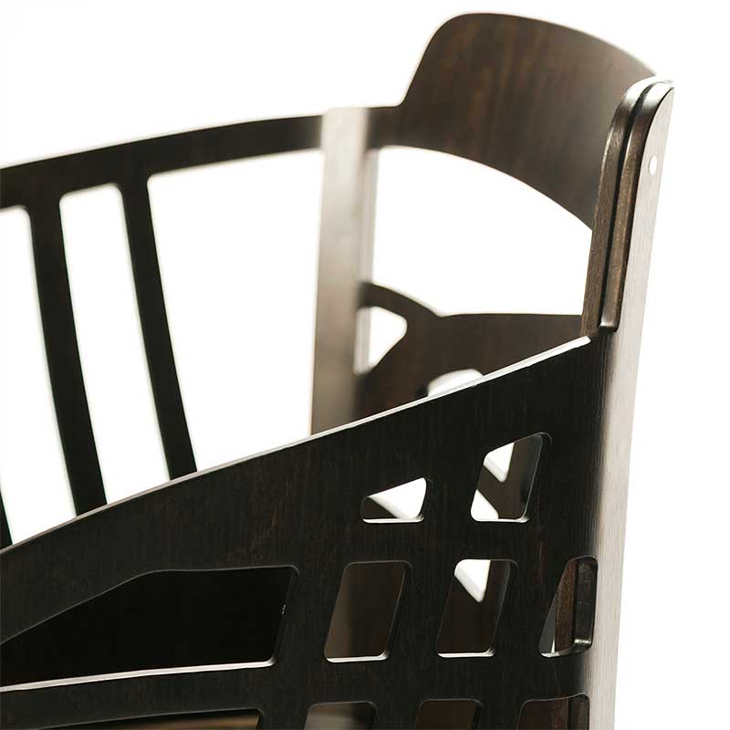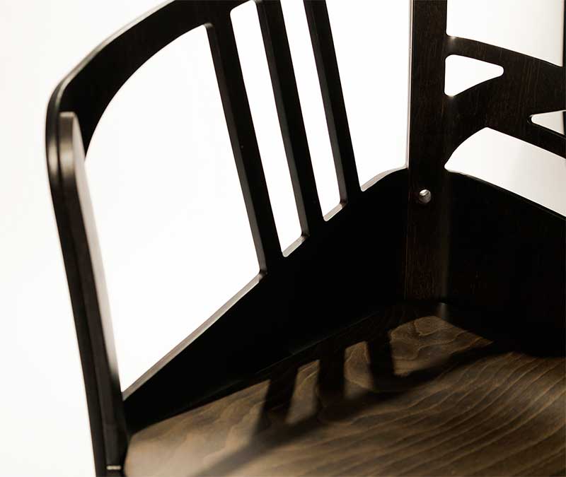 建築家のオットー・ワグナーの作品からインスピレーションを受けた、不思議なフォルムの椅子。実は一点の位置から見ると、目の錯覚により見慣れた家具のフォルムになるトリックアートな椅子です。