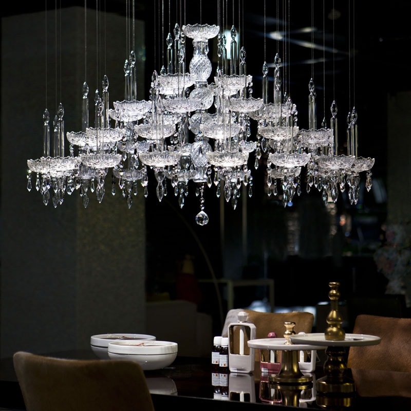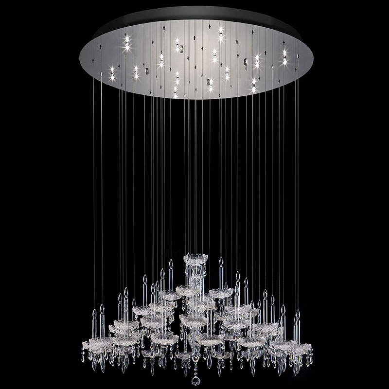 伝統的なボヘミアン調のデザインを取り入れた直径1m10cmの大型サイズのシャンデリア。