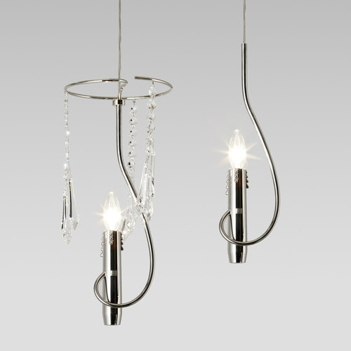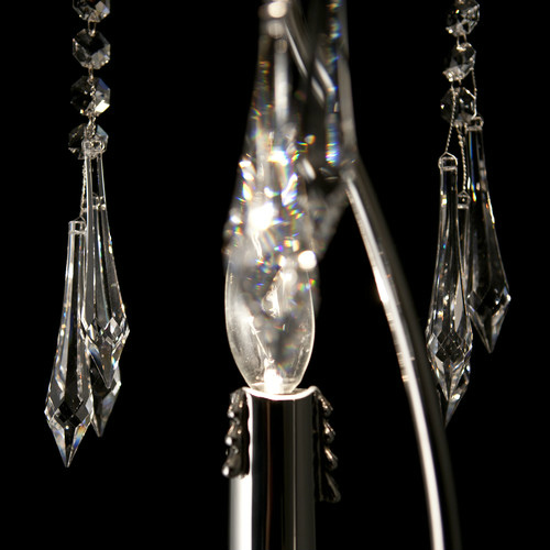 キャンドルそのままのカタチをデザインとして表現しています。1灯だけでも面白いですし、2灯、3灯と並べることでも違った印象を空間に与えます。いくつものコーディネートが可能な照明です。オーナメントにはスワロフスキー社製クリスタルガラスを採用しています。