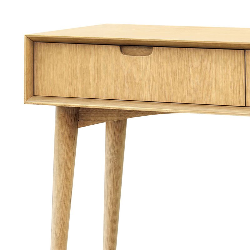 壁面に設置する引き出し付きのコンソールテーブルです。スマートな奥行きはリビングだけでなく、寝室や玄関ホール、廊下に置くにもちょうどよいサイズ。壁面にミラーを掛けて、ドレッサーのように利用することもできます。