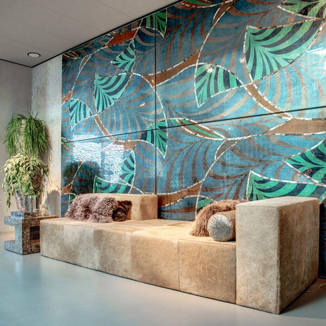 しかしながらこの巨大な1枚のパネルは、4枚すべてを揃える必要はありません。1枚でもダイナミックなアートとして、銀箔や貝殻で細緻に象られていることを忘れてしまうくらい、空間に力強く存在します。