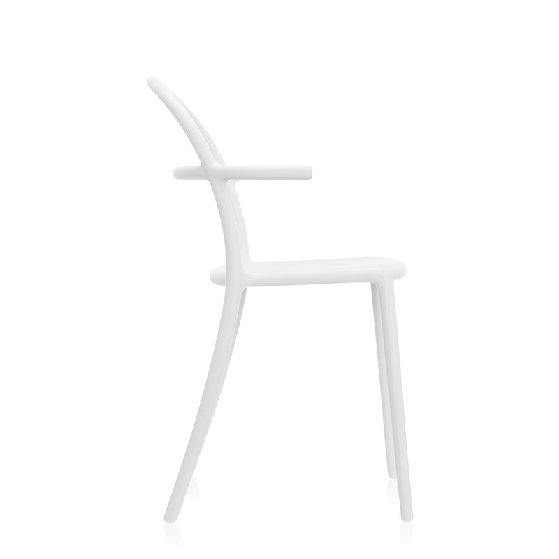 身体の接する部分が面取りされ、高めに設定された背もたれや、絶妙なポジションの肘掛けなど、ミニマルでありながらも機能的な部分が深く考えられています。6脚までスタッキング可。
