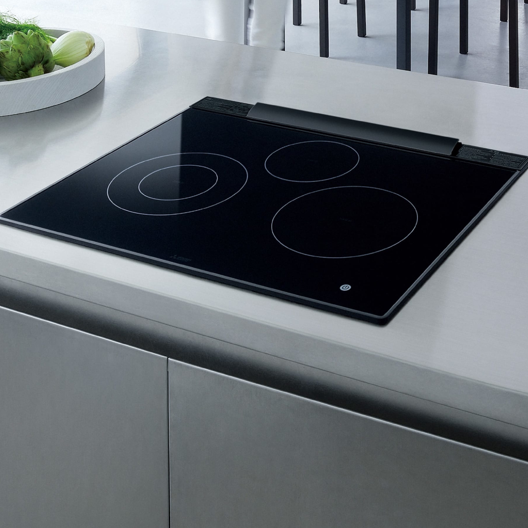 フランス・ユーロケラ社製のプレミアム・ブラックガラスは、耐熱・耐衝撃性に優れ、深い光沢が空間に品格をもたらします。