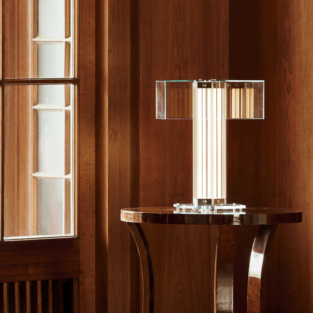 デスクやベッドサイドに置くと、小さな光の彫刻として空間に佇みます。ディマー対応。