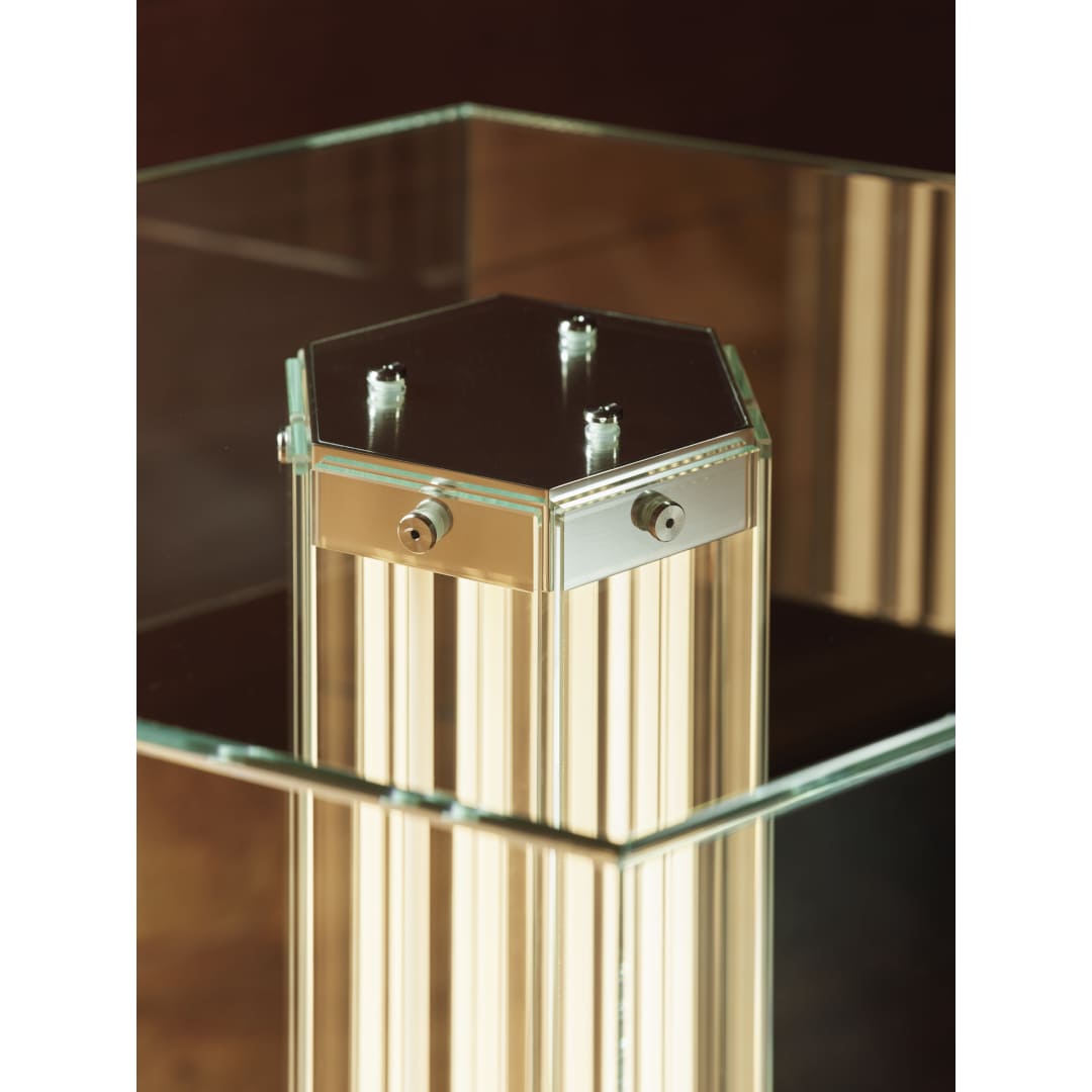高さ45cmの単体モジュールの上に、六角形のガラスカバーを載せた構造。