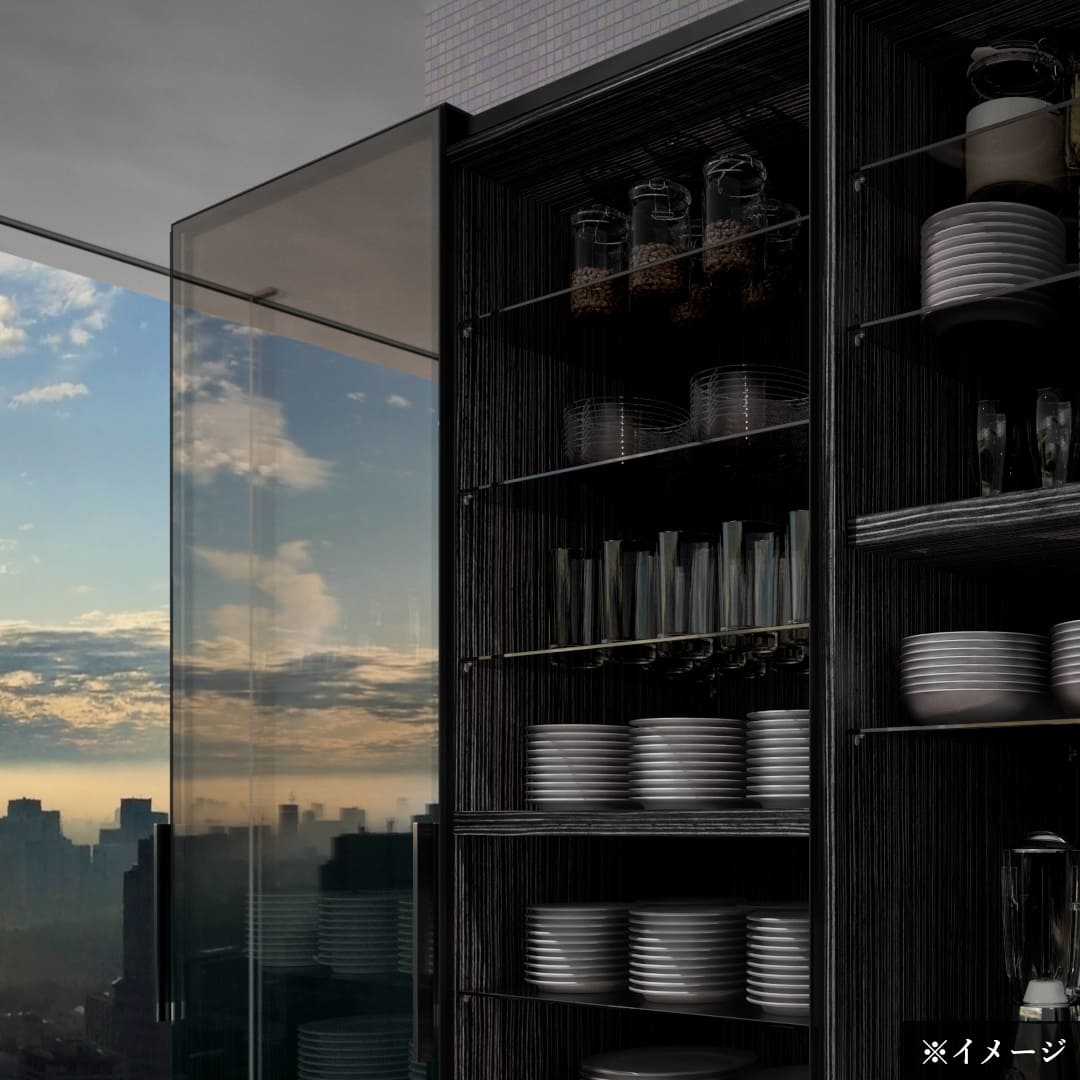 オーランドはLDK空間に自然と馴染む2種類のミラー扉を採用し、極限まで薄く削ぎ落としたシンプルな扉が、快適で広い空間をつくり出します。