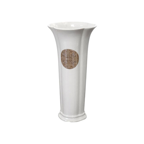 真っ白なフラワーベースの中央に配された模様が、オリエンタルな雰囲気を放つデザインです。白に映える美しい草花を飾れば、自然のもつ色彩をより際立たせてくれます。