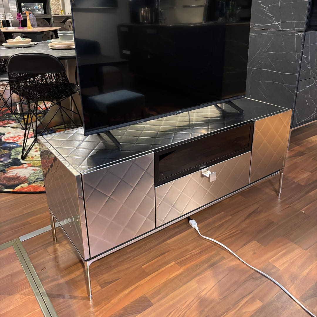 「TVイゾラ」は、イタリア語で“島”を意味する名のとおり、部屋の中央に置くことができるアイラントテレビボードです。