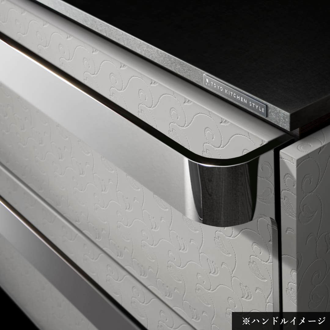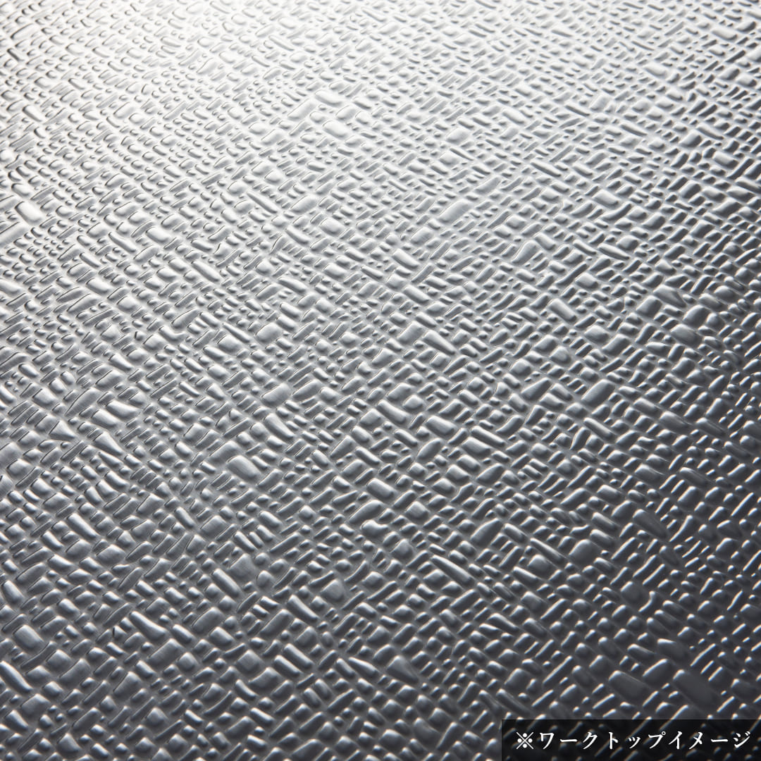 ステンレスにデザインを施した新感覚ワークトップ。美しいだけでなく、特殊なプレスパターンによって傷がつきにくく目立ちにくいため、永く美しく使い続けられます。