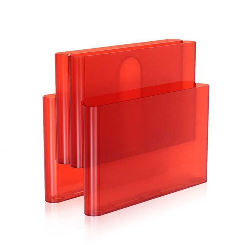 4ポケット式マガジンラック。中央のポケットがハンドルを兼ねているので、持ち運びも簡単です。直線的でエッセンシャルなデザインは、どこにいてもおしゃれ。典型的イタリアンデザインで、カルテルコレクションのロングセラーアイテムです。