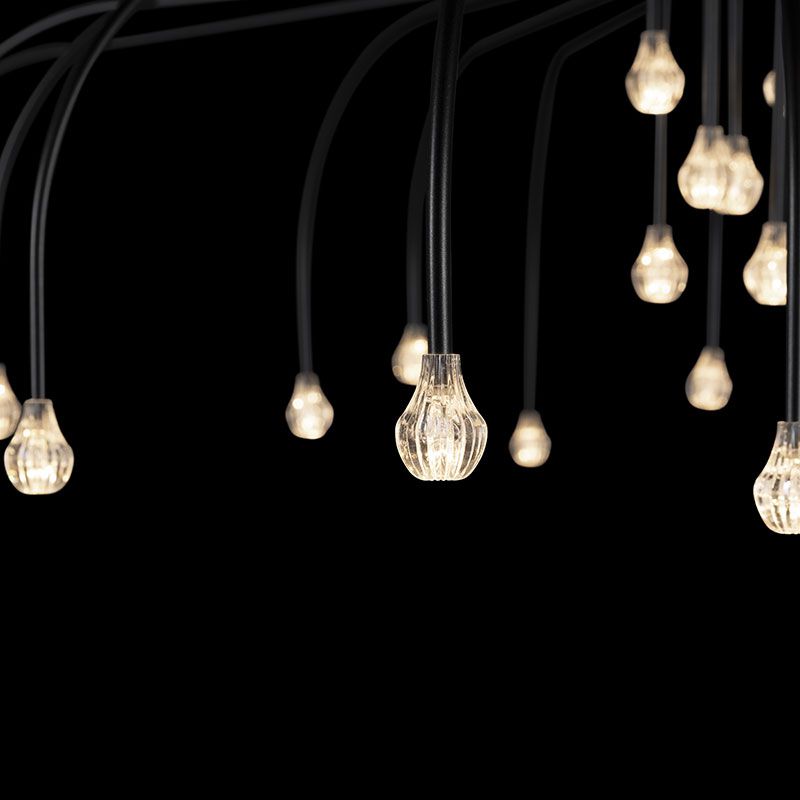 スターフォールライトは、現代風にアレンジされたアームが放射状に広がったサスペンションライトです。ちょうどシャンデリアが逆さまになったデザインで、30個のLED光源が下向きに星の光を注ぎます。