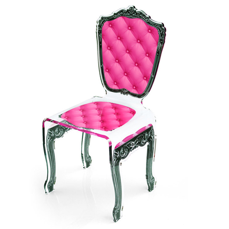 分厚いアクリルをチェアのシルエットでカットし、高度な技術で大胆に曲げて製作された家具シリーズです。